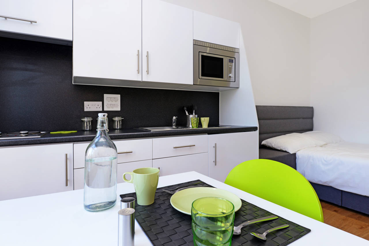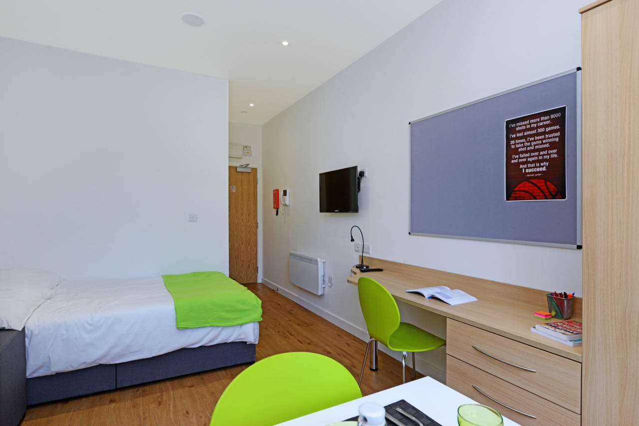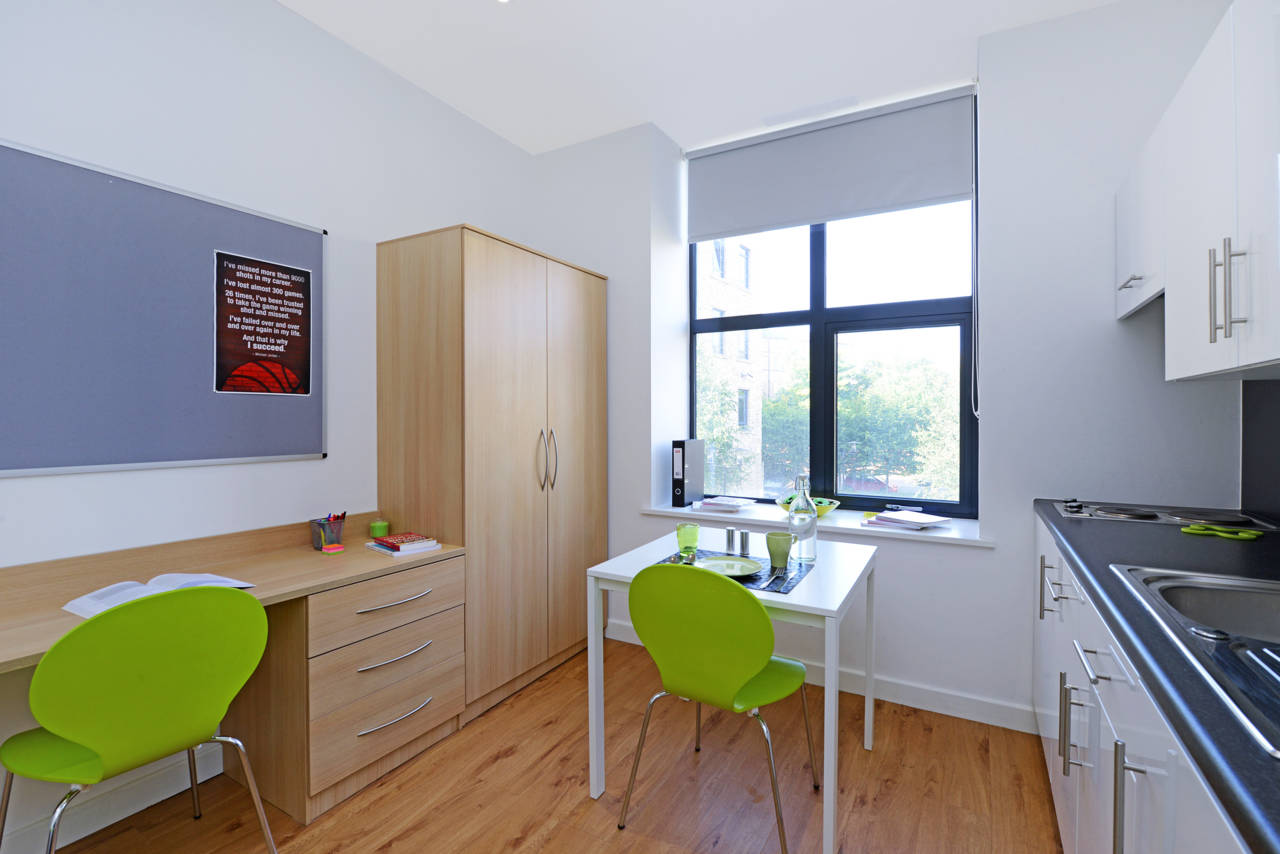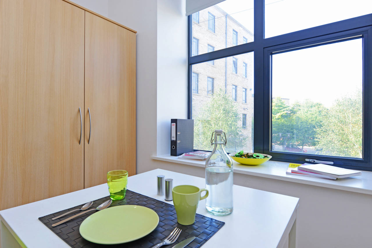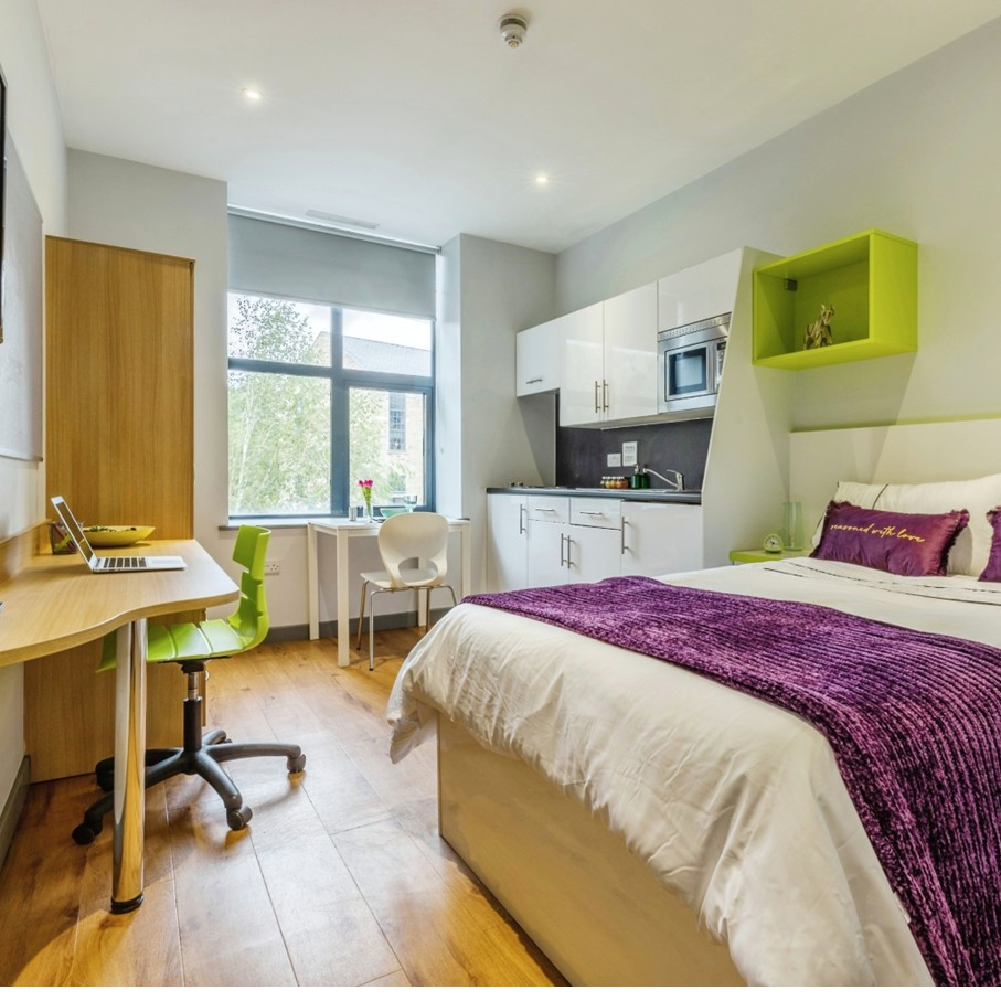 地理位置优越 ,距离哈德斯菲尔德大学步行约5,6分钟,距离市中心仅要10分钟,所有房间都是带独立卫浴和厨房的Studio,公寓配套设施完善,周边生活交通便利。