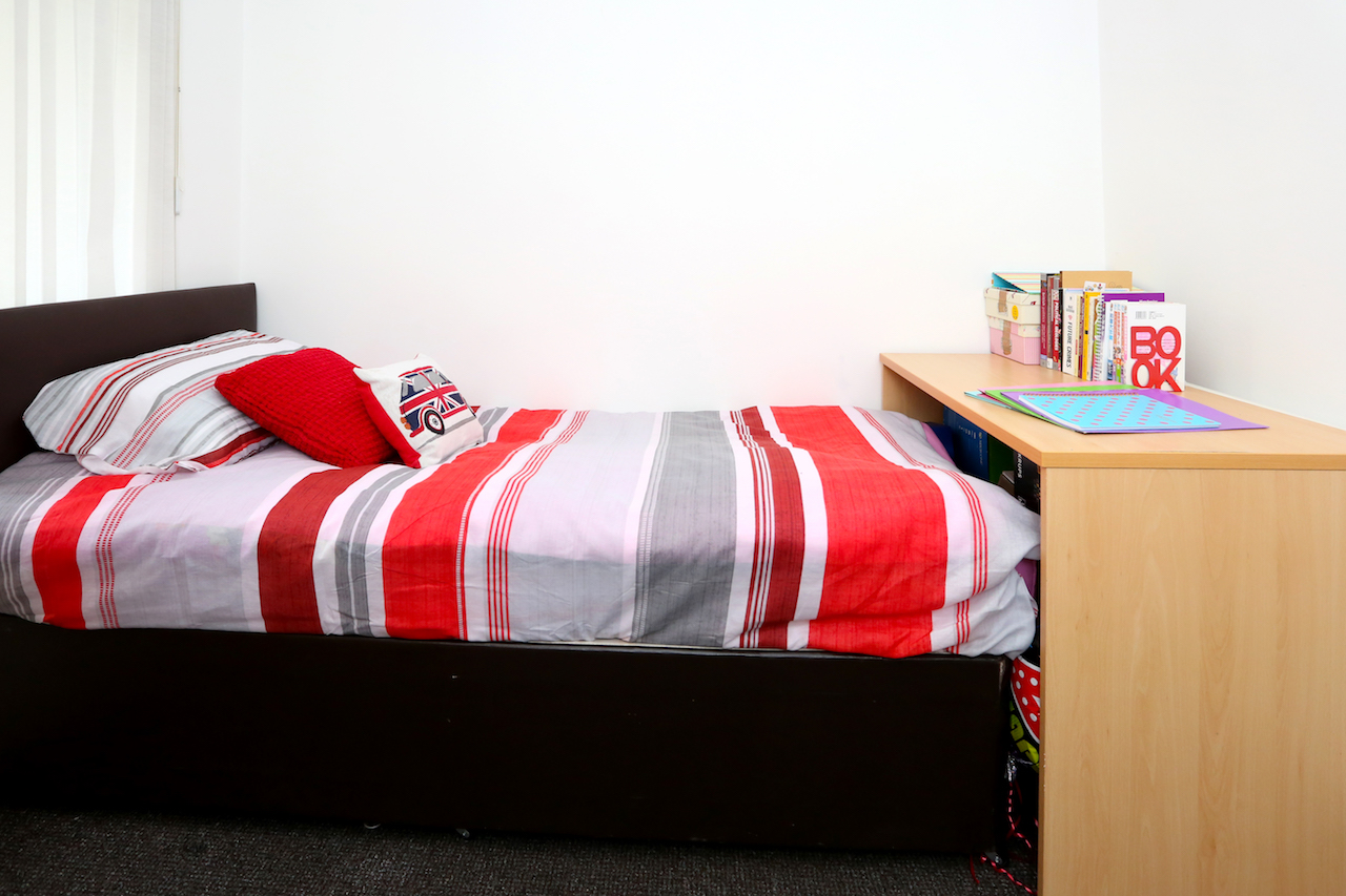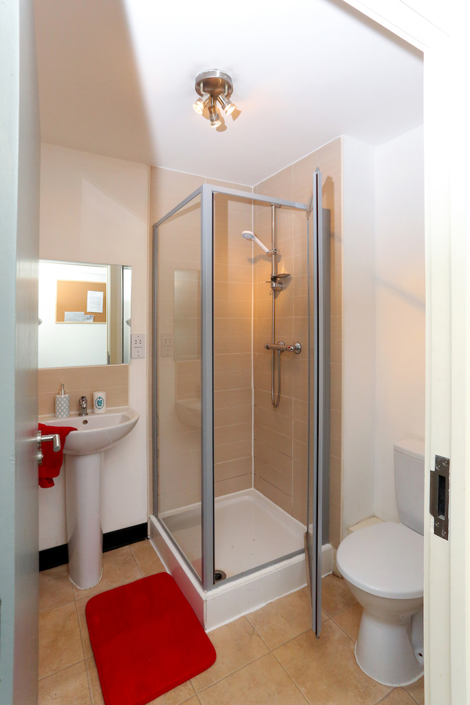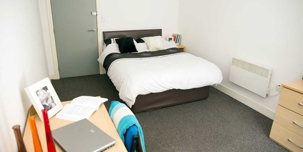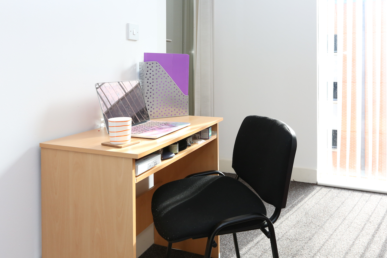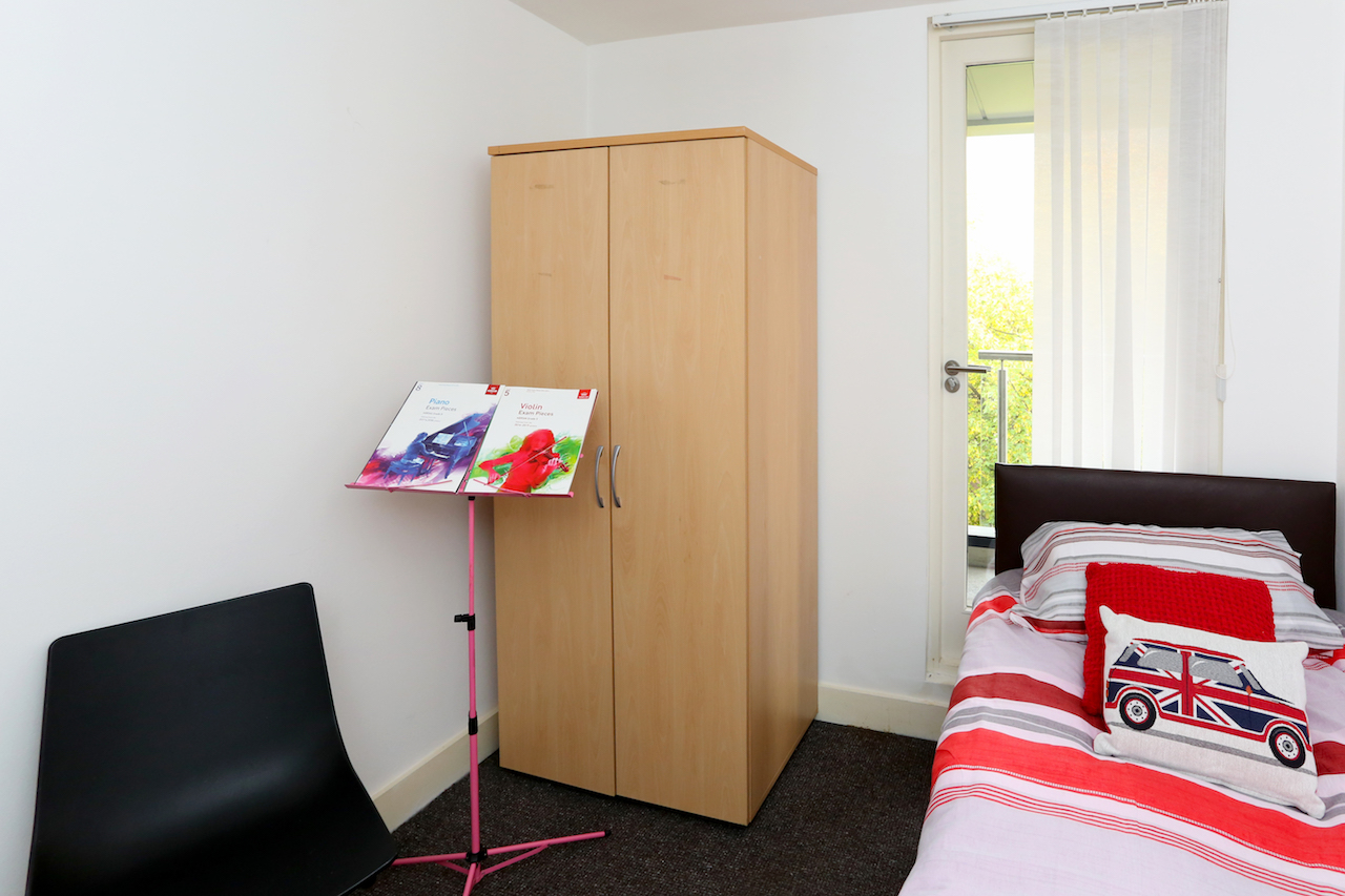 全房型共享卫浴与厨房,卧室配备小双人床、书桌、衣柜、书架及独立洗手池(Uhomes 数据),储物空间充足,部分顶层房型采光更优。所有房间均覆盖高速 WiFi,网络稳定适配线上学习,中央供暖系统保障恒温,家具家电全配齐,拎包即可入住;独家阳台设计是一大特色,可晾晒衣物或休闲小憩,在曼彻斯特学生公寓中较为稀缺。