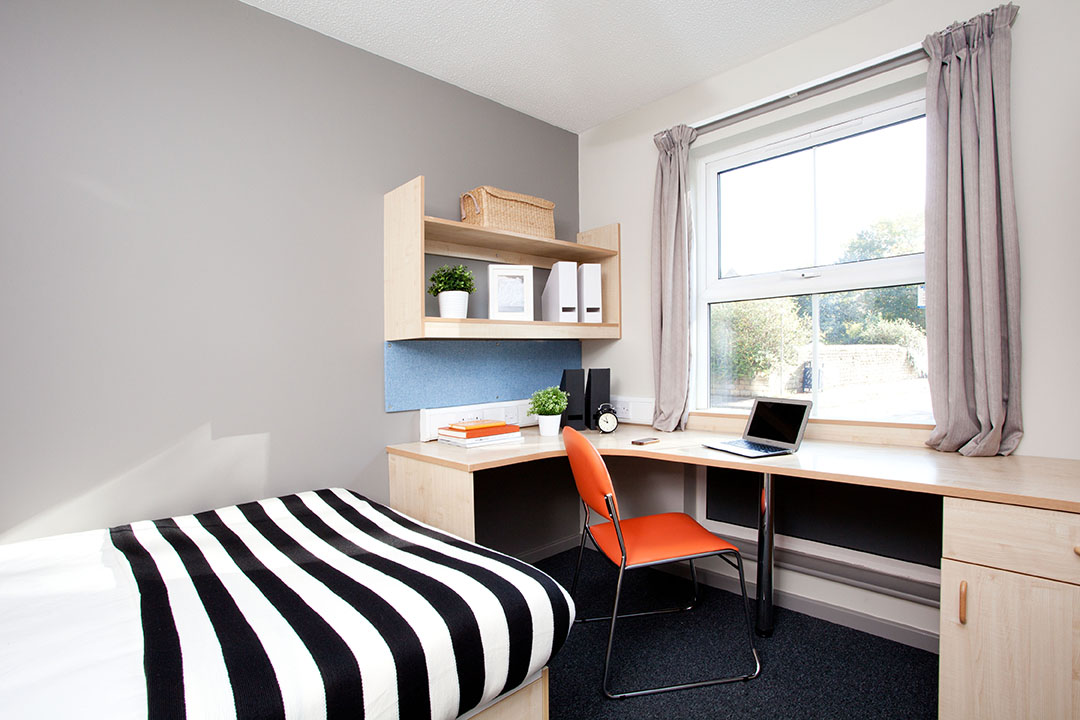 房间分Classic和Premium两种En-Suite房型,3-5人共享客厅厨房,人均空间超宽敞。卧室配单人床、全套家具和独立卫浴,还有专属工作区,写essay不被打扰;窗户可正常开启,暖气充足,秋冬也暖融融。