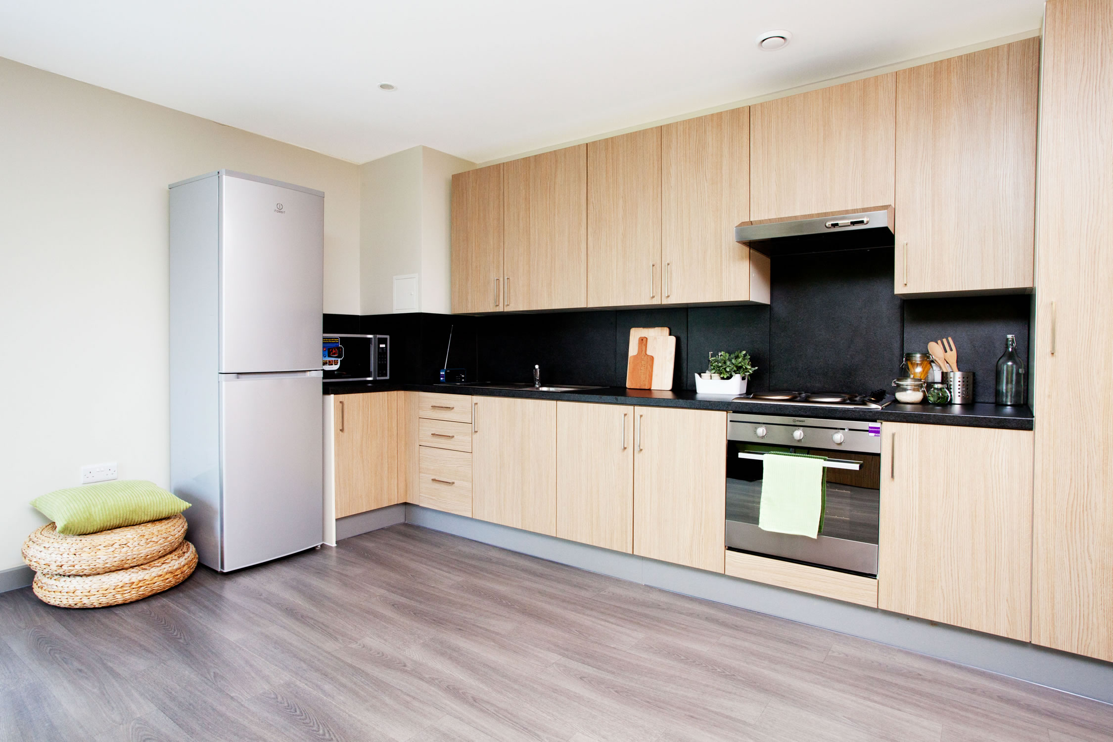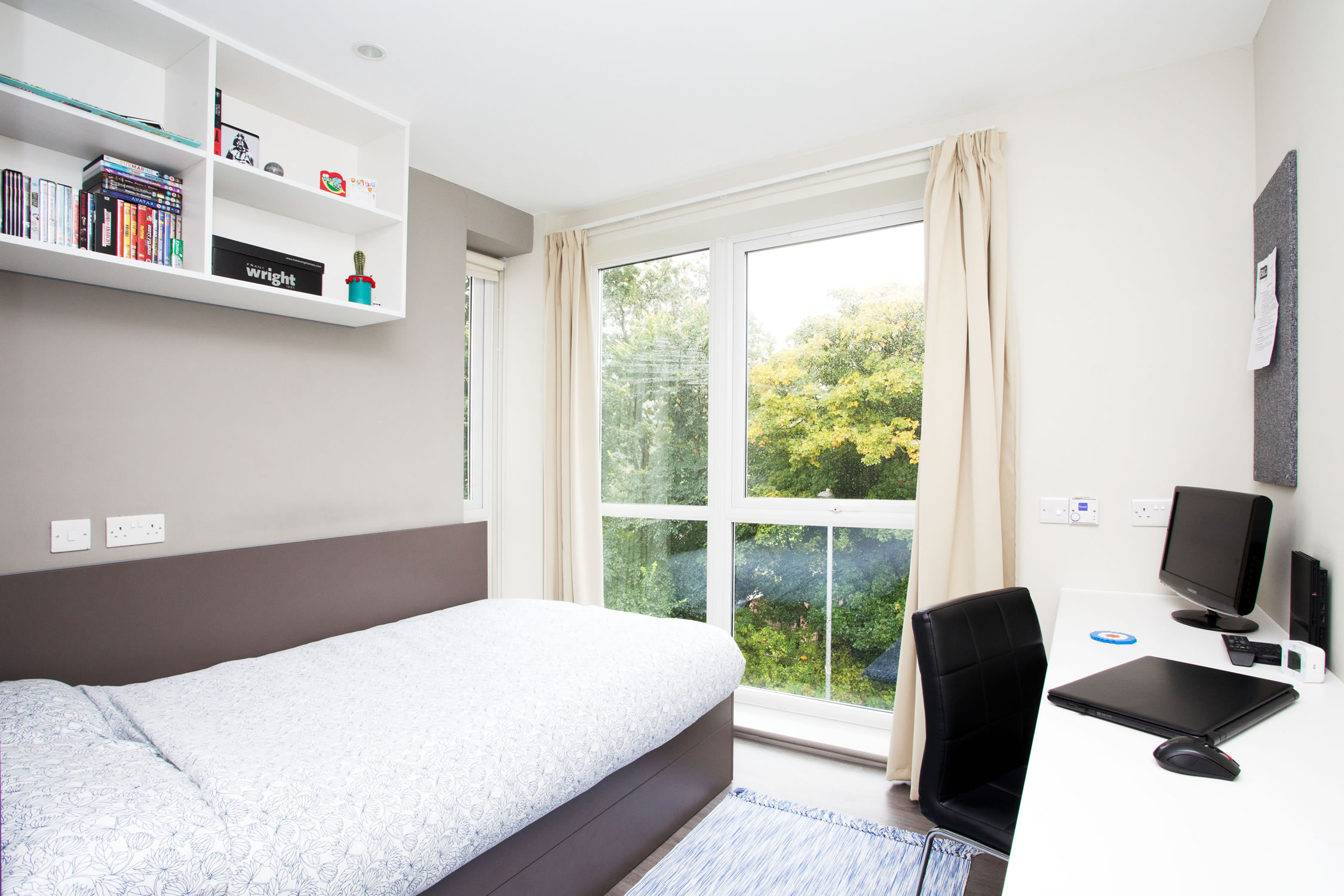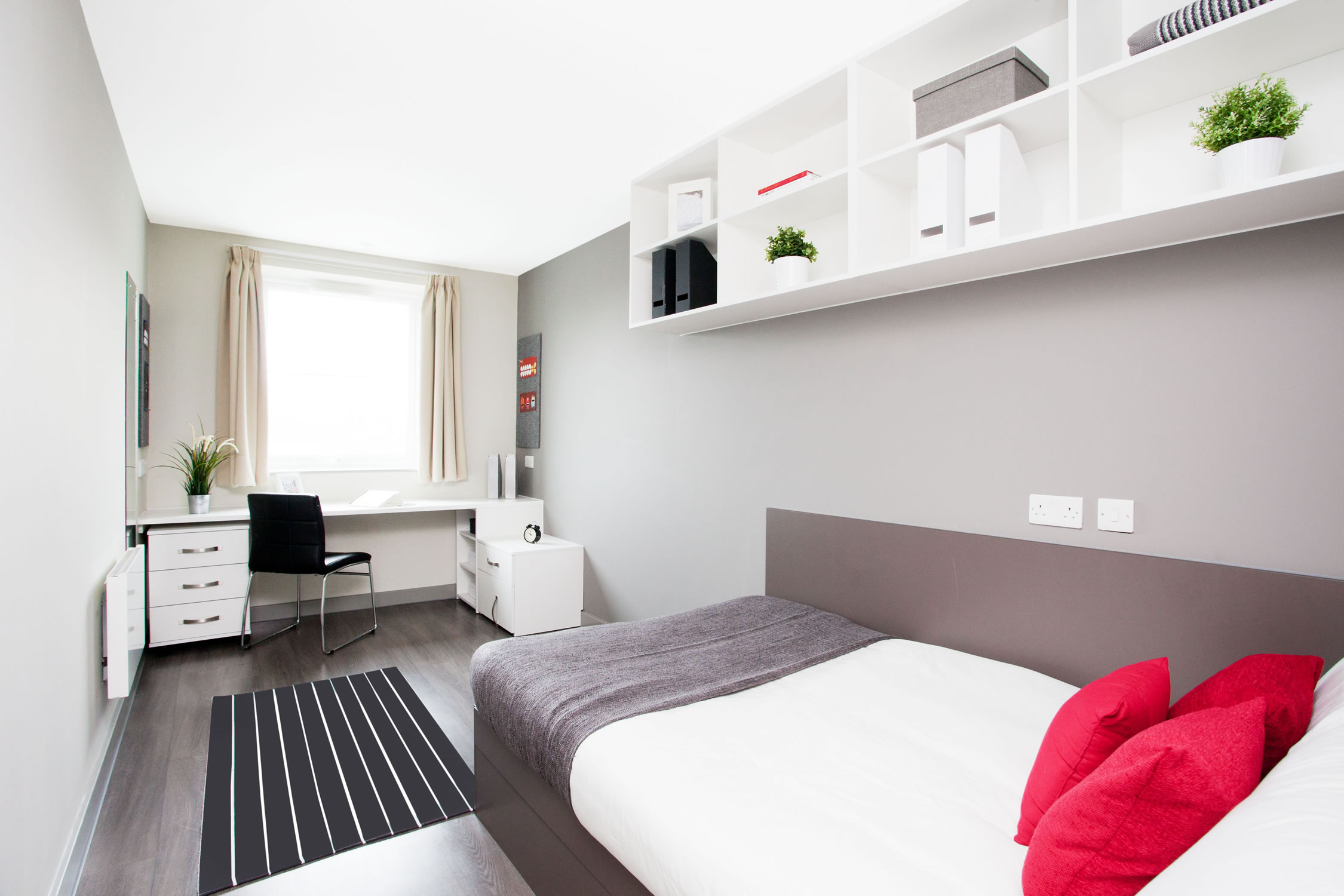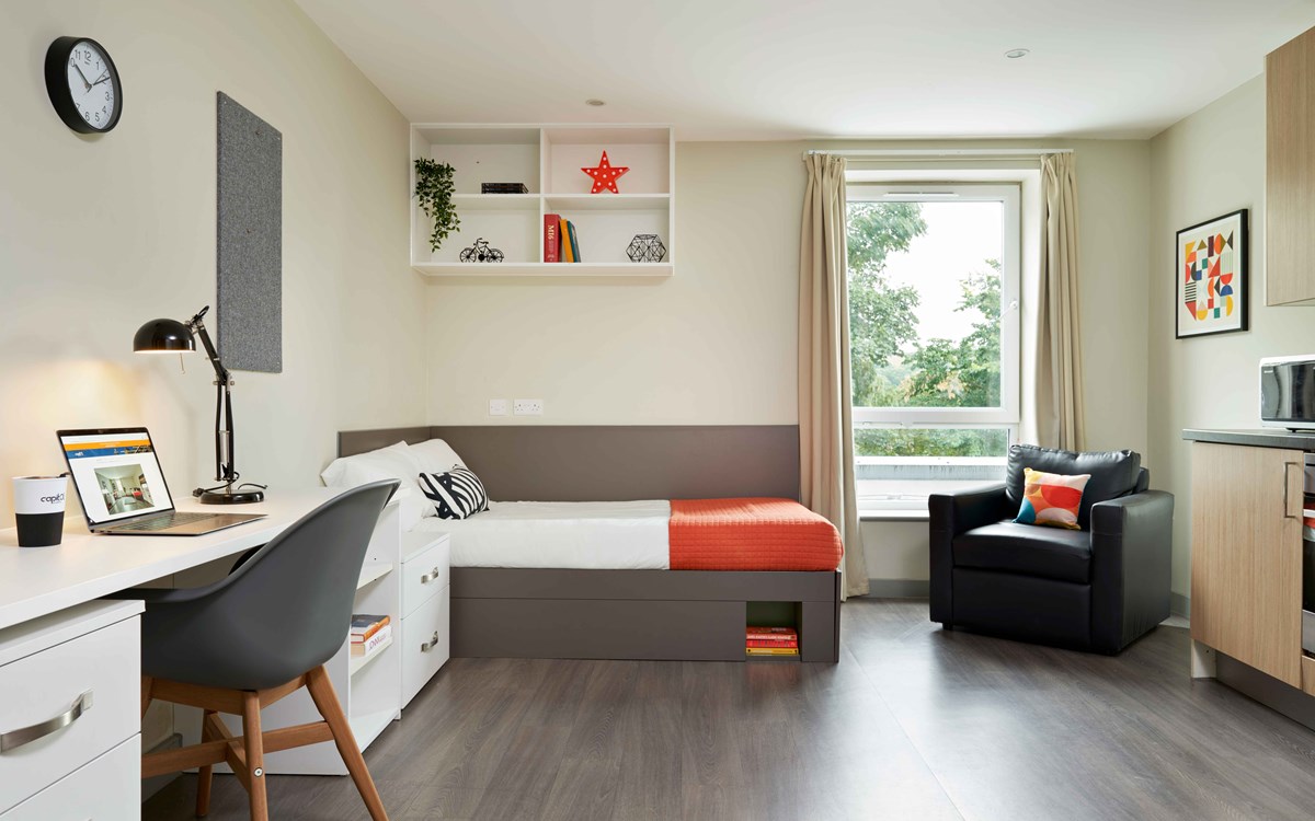 我们提供两种主流房型:En-Suite(独立卫浴,6-9人共享厨房客厅)和私密性更强的Studio(独立厨房卫浴)。所有房间都配备了舒适的单人床、宽敞的书桌和充足的储物空间,保证你有一个安静、专属的休息和学习角落。暖气充足,窗户可开启通风,让你拥有一个冬暖夏凉的舒适环境。