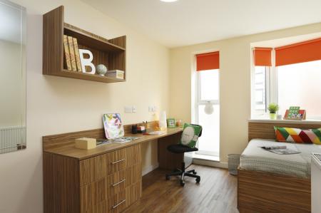 主要提供En-suite(独立卫浴,共享厨房) 房型。装修风格较为基础和传统,但配备了床、书桌、衣柜等必需家具,维护状况良好,干净实用。