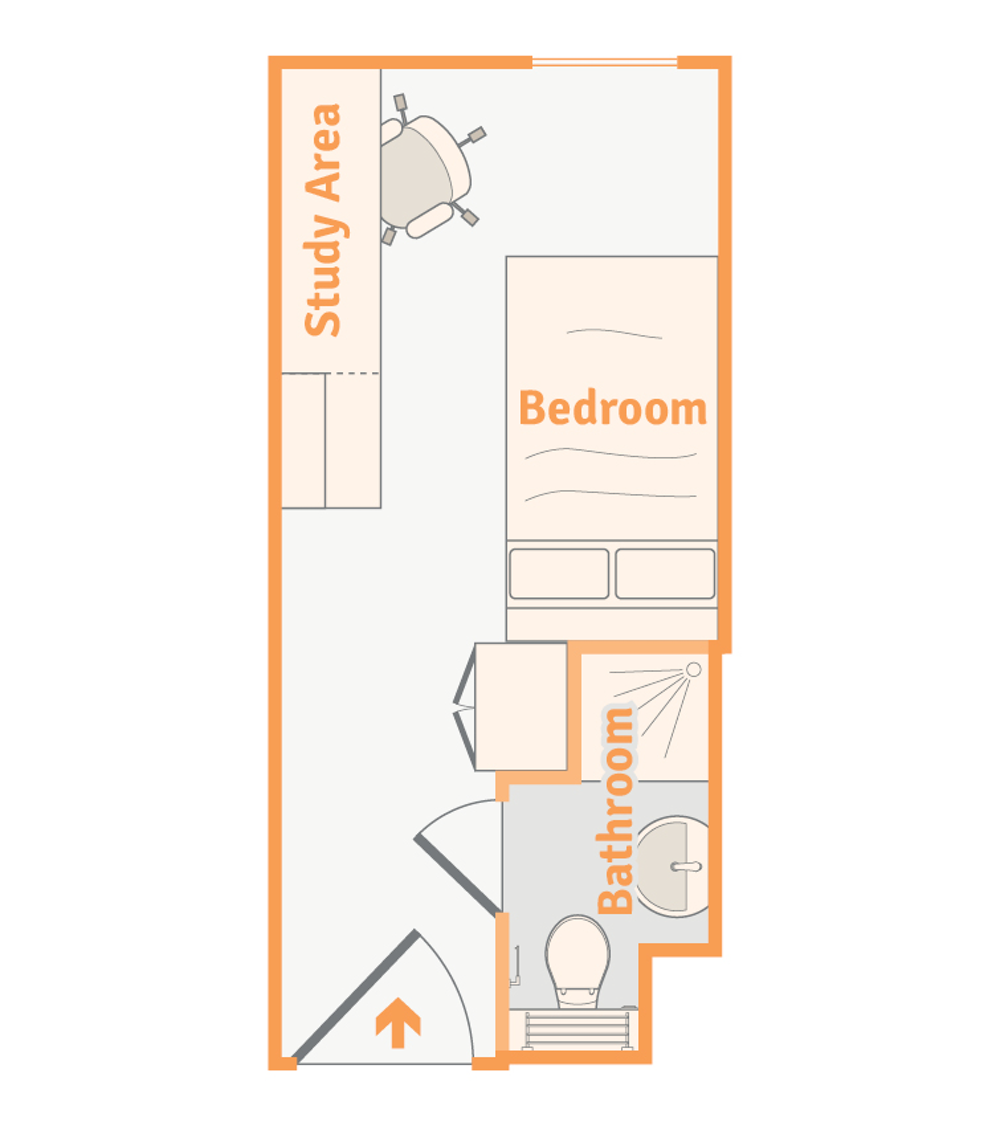 Gold Studio/Silver Studio(单间公寓) 超适合喜欢独处的宝子!自带独立小厨房,能自己煮家乡菜;3/4 床或双人床睡起来超舒服,宽敞衣柜塞得下四季衣服,专属学习区够放电脑和课本,赶 due、上网课都自在;
