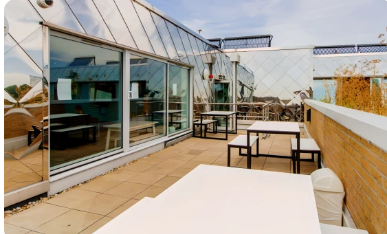 可以庭院和屋顶露台欣赏令人惊叹的城市景观。楼内还配有洗衣设施和自动售货机