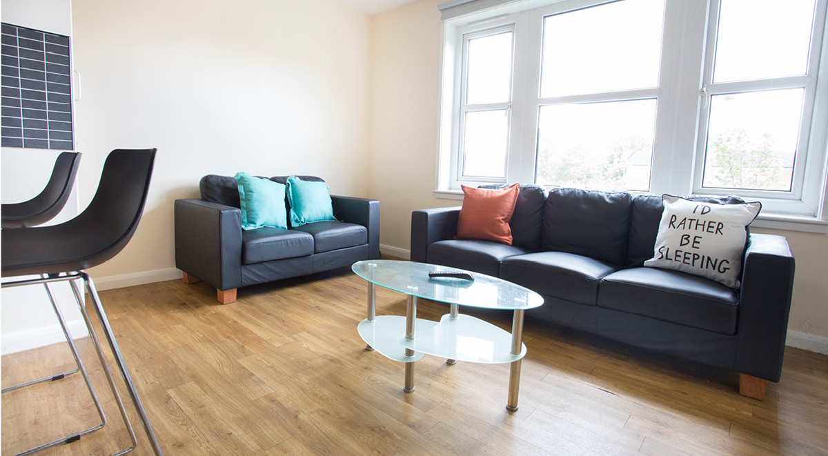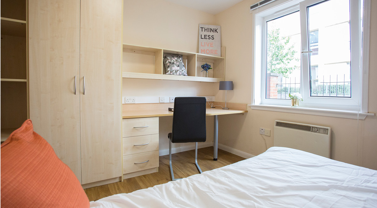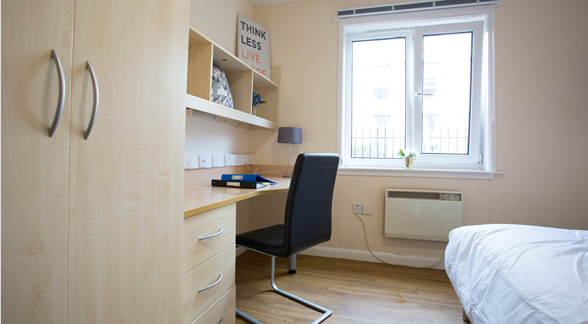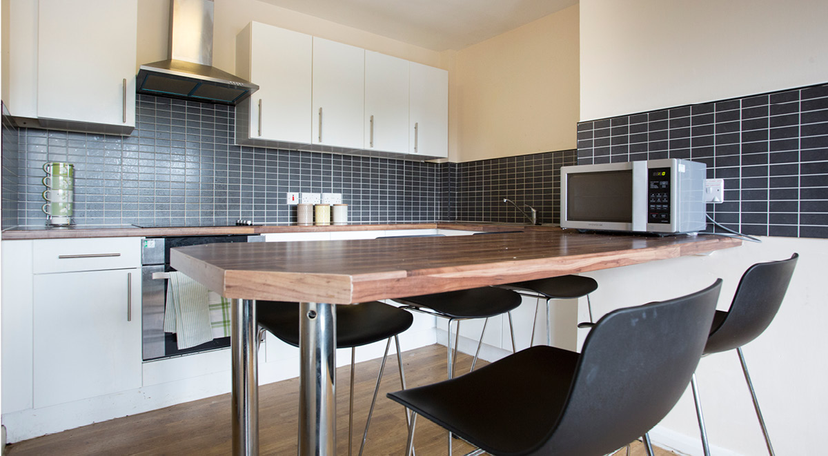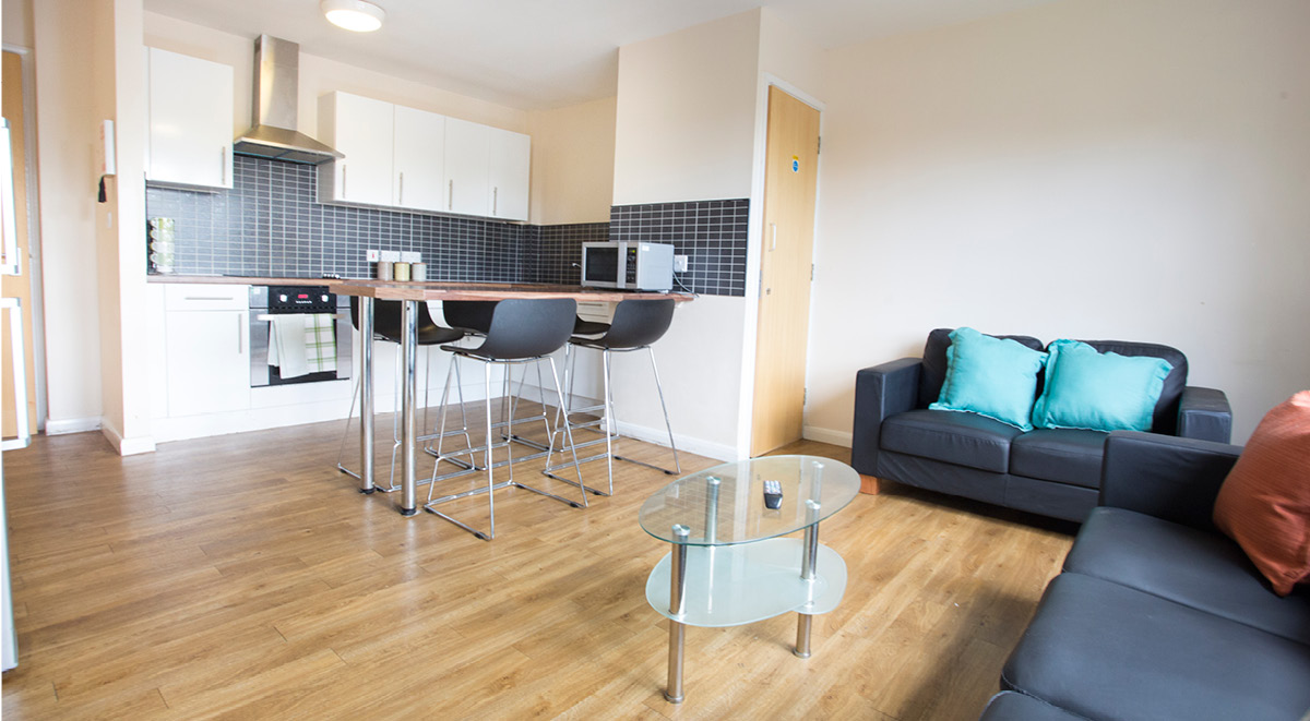 所有房间均带独立卫浴,提供床、衣柜、书桌椅、储物空间等基础家具,干净利落、拎包即可入住。共享厨房配备炉灶、烤箱、冰箱、微波炉、餐桌等常用设备,公共客厅空间适合做饭、聊天和朋友聚会。公寓整体风格温馨实用,非常适合第一次来英国的学生。