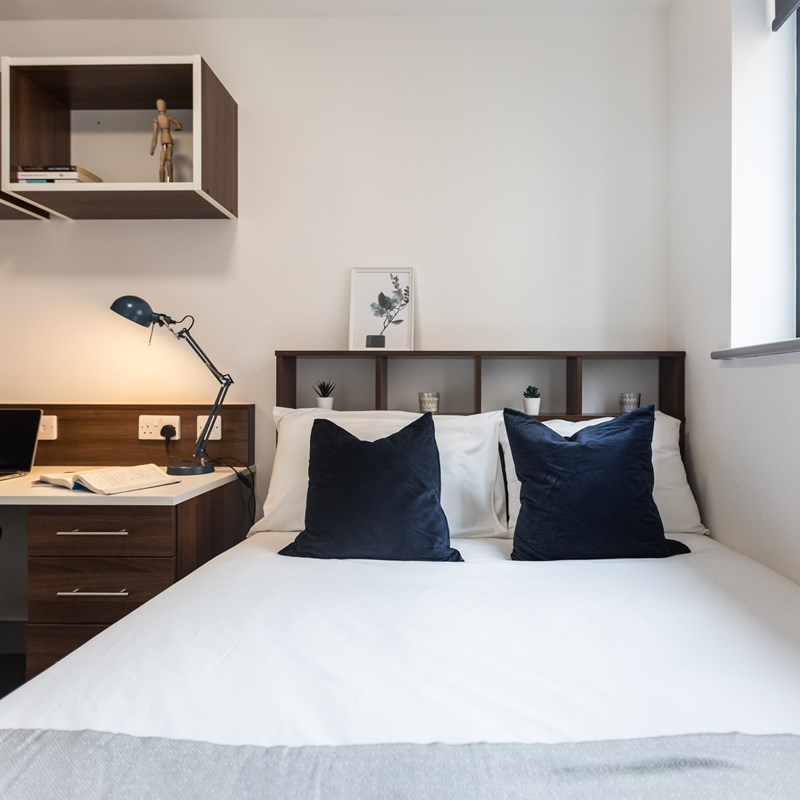 公寓提供多种房型选择,包括共享卫浴的Ensuite和独立Studio。每个房间都配有舒适床铺、宽敞书桌、充足储物空间以及可开启的窗户,保障室内通风与自然光线。房间内暖气充足,24小时热水稳定供应,冬季温暖舒适,夏季通风良好。所有水电费和暖气费均已包含在租金中,无需额外支付账单,让留学生活更省心。