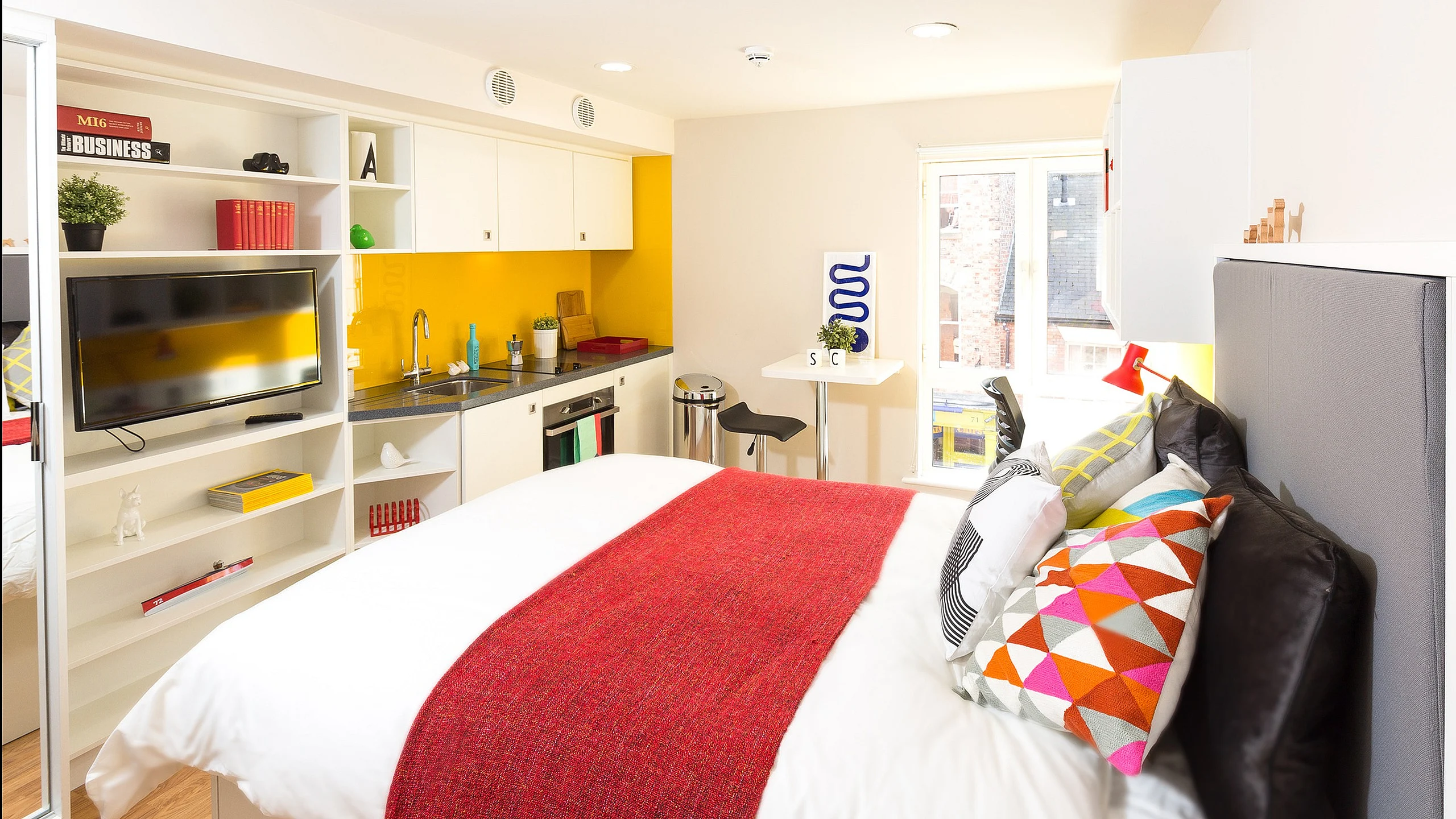 公寓地理位置优越,位于市中心的边缘,公寓配套设施齐全,提供免费健身房、免费游戏机等,出门就是公交站,距约克的大学和著名景点仅几步之遥,周边生活交通便利,公寓提供的房型主要是Ensuite和Studio,Ensuite房型厨房和客厅和舍友一起享用,一般是4-7人共用,Studio房型,除了个人卧室和独立卫浴,还拥有个人的厨房。