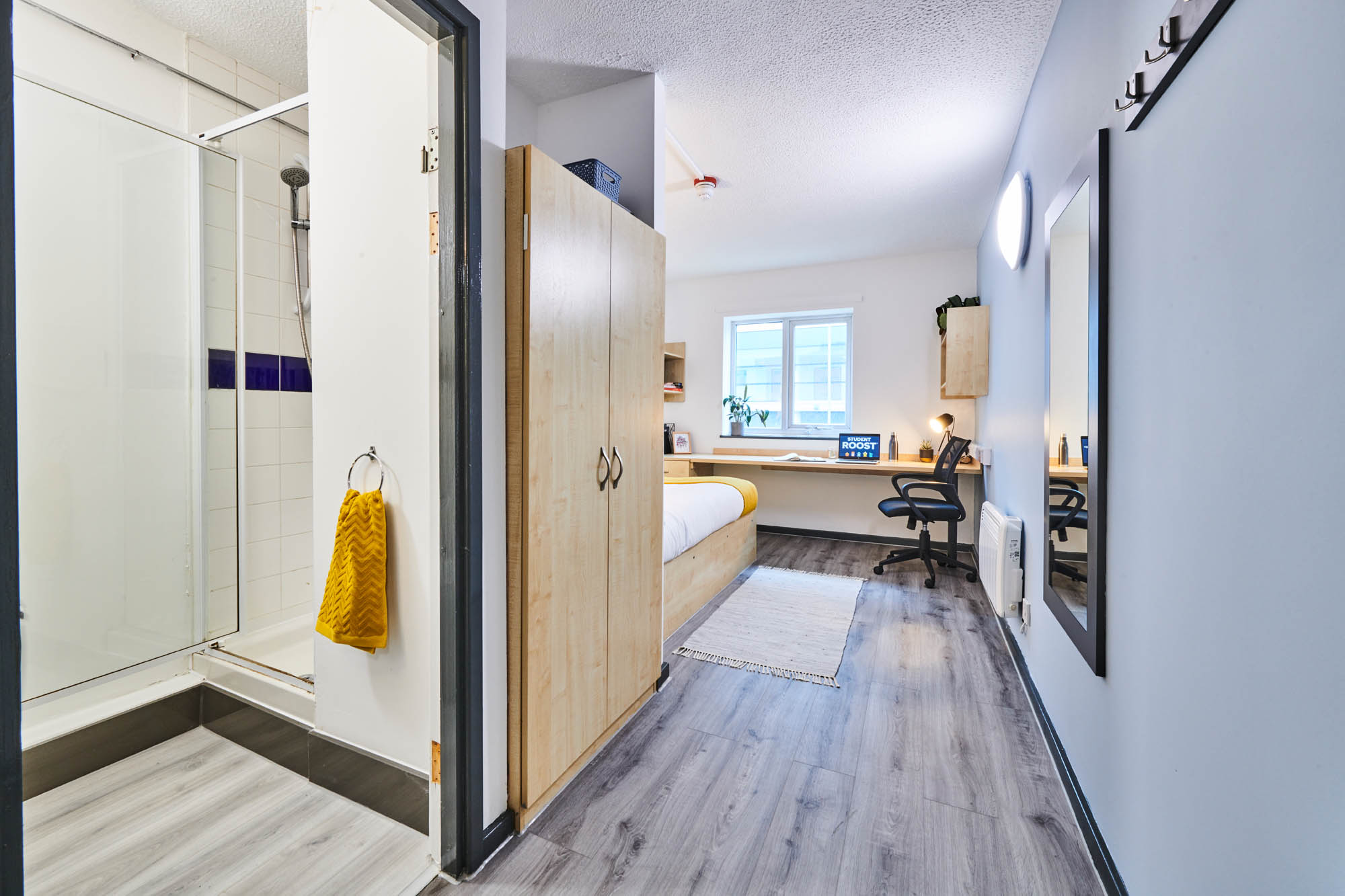 房间内部:studio 面积约 20-24㎡,ensuite 约 15-18㎡;均配 1.2 米单人床、可开启大窗户(通风顺畅)、独立卫浴与紧凑型厨房;全屋暖气覆盖,冬季温暖舒适,不用裹厚衣。