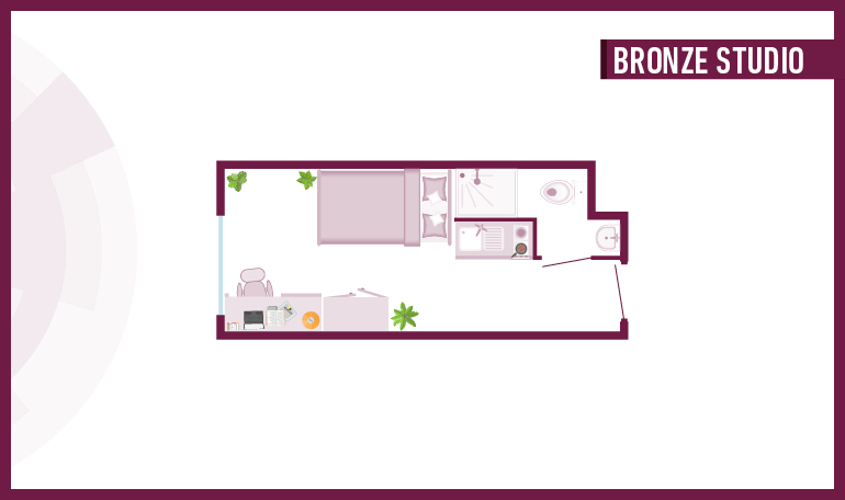 房间内厨房用品齐全,生活设施完善,Ensuite共享舒适起居空间,Studio坐拥独立景致,每一处都为你贴心规划,住得舒心自在。