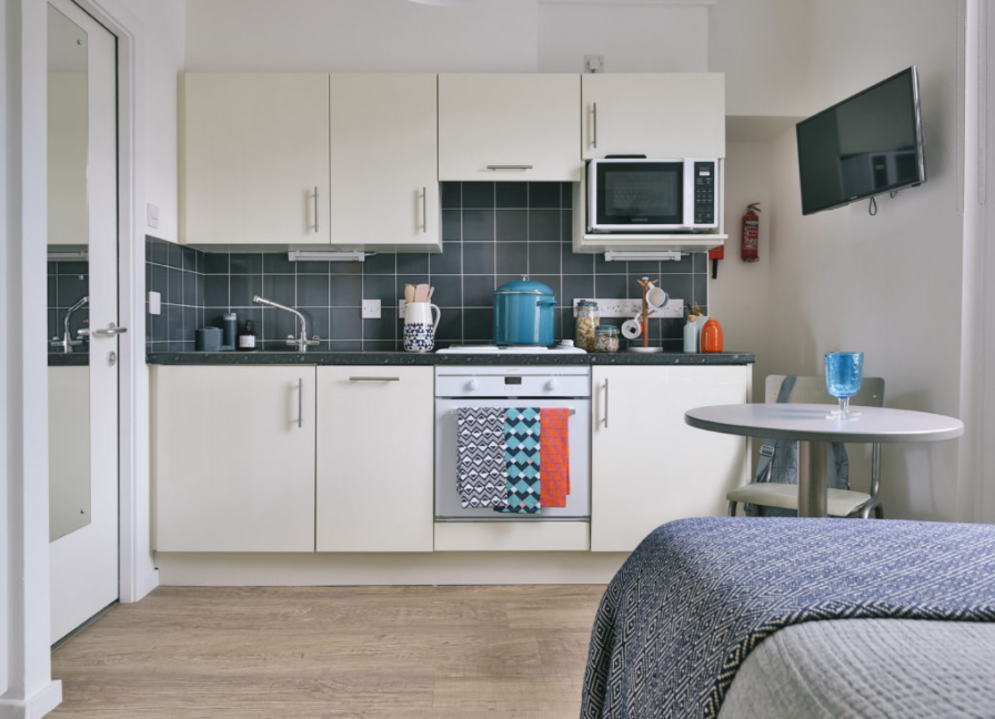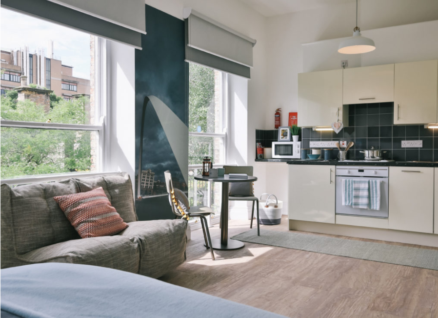 房间内部:提供 Studio(独立卫浴 + 独立厨房)和一居室两种房型,空间独立舒适。每间配全套家具、厨房用品,满足居住与做饭需求;窗户可正常开启,通风采光好,暖气充足,24 小时热水,居住体验舒适,能自在打造专属小空间。