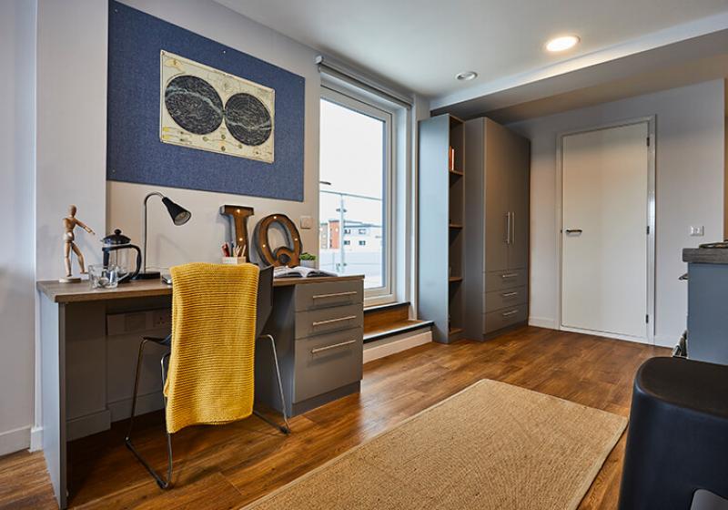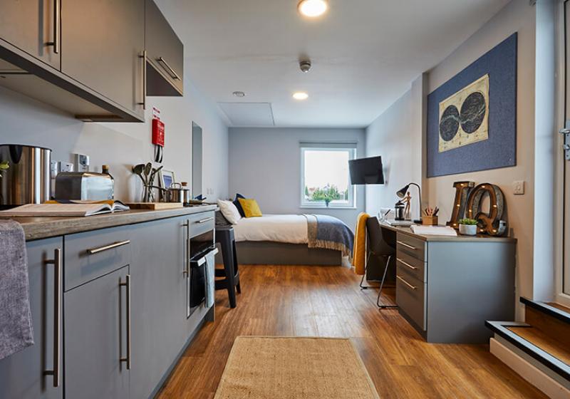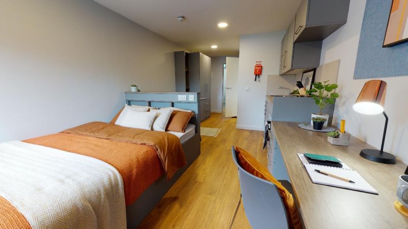 房型为Ensuite(共享大厨房),Studio 可选,空间布局合理不拥挤。独立卫浴,储物衣柜充足,暖气系统稳定,抵御英伦湿冷气候。