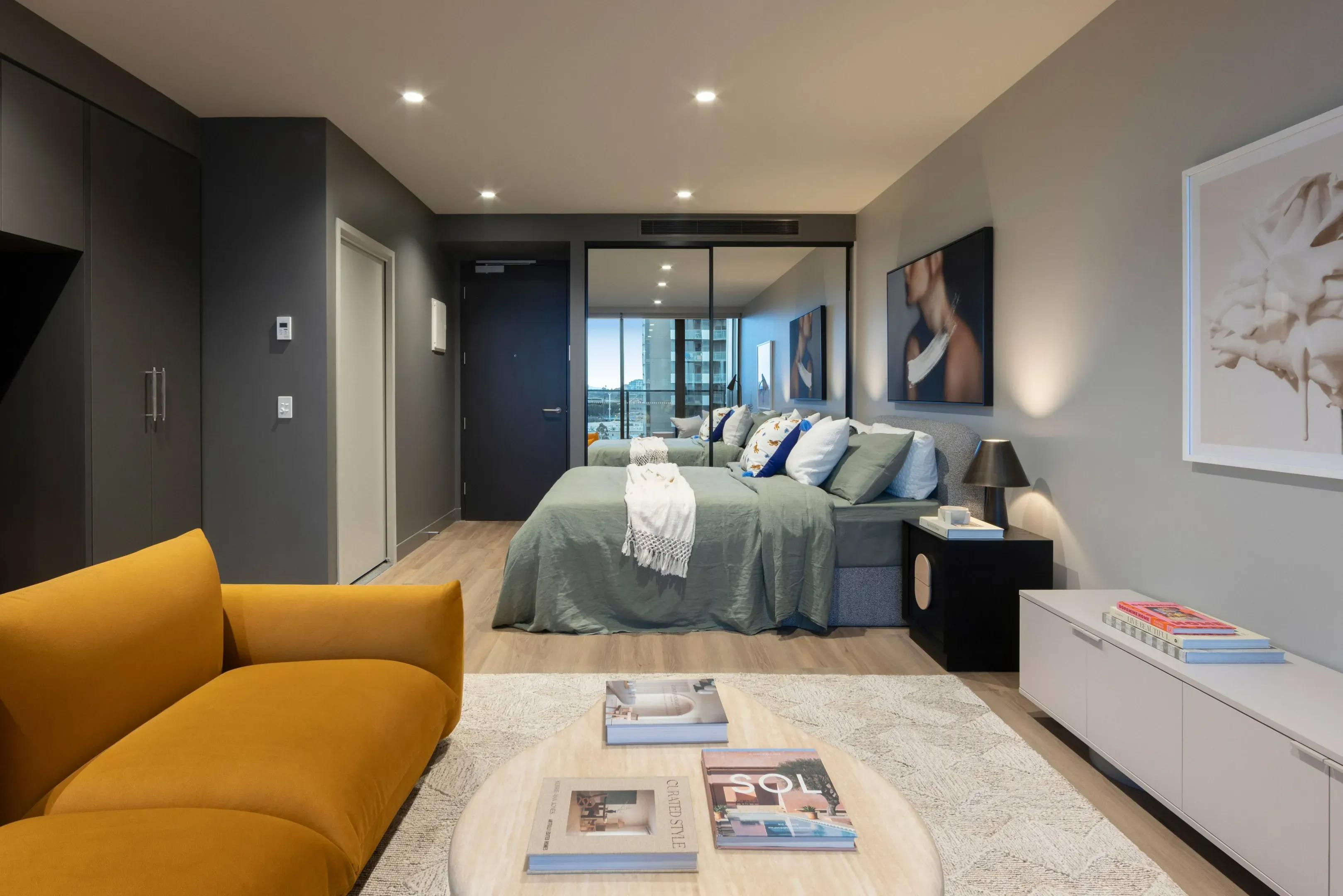 公寓概况:墨尔本活力满满的内城区南岸,主打高端体验的定制化租赁公寓,专为提升日常居住品质打造,也是留学生的理想居所。户型设计明亮通透,多数配备落地窗与私人阳台,可俯瞰城市或海湾景致,厨房配套齐全,含全尺寸烤箱、感应灶台及冰箱、洗碗机等全套家电,部分户型还设有嵌入式书桌,兼顾居家办公与学习需求。公寓秉持环保理念,公共区域全部采用 100% 可再生电力供电,同时打造了成熟的社区氛围,配备专属住户服务团队,让住户从入住首日就能拥有家的归属感。