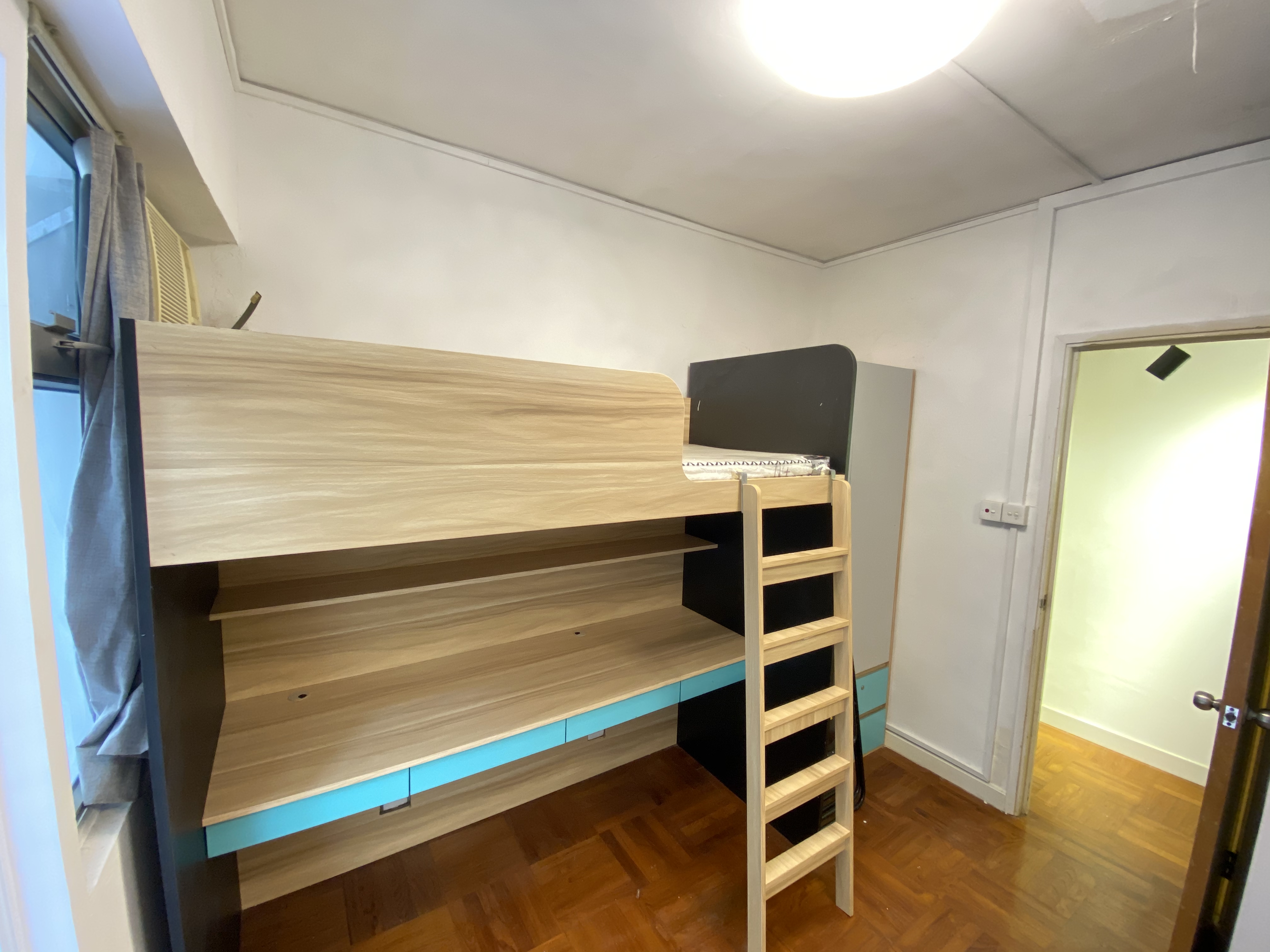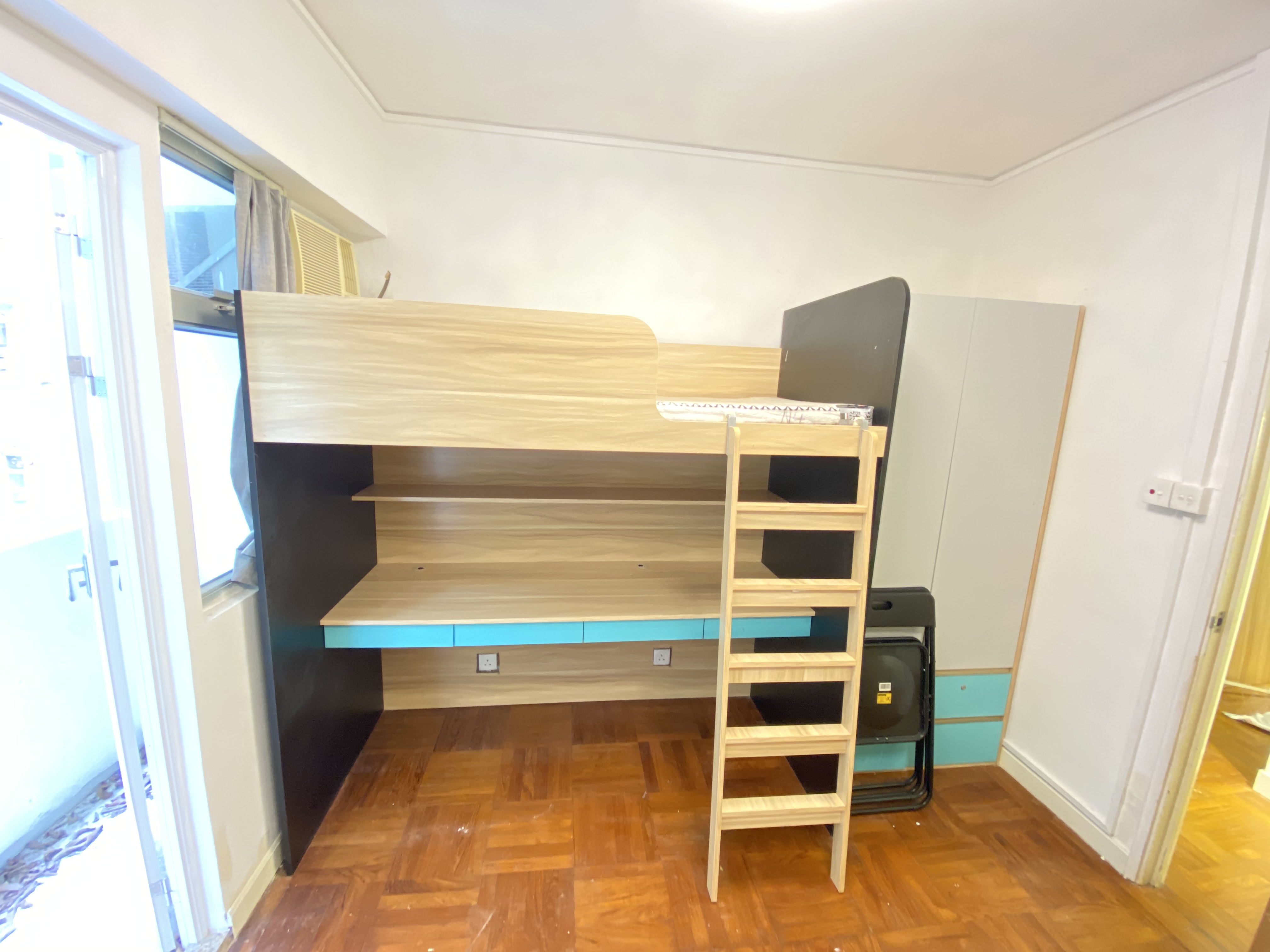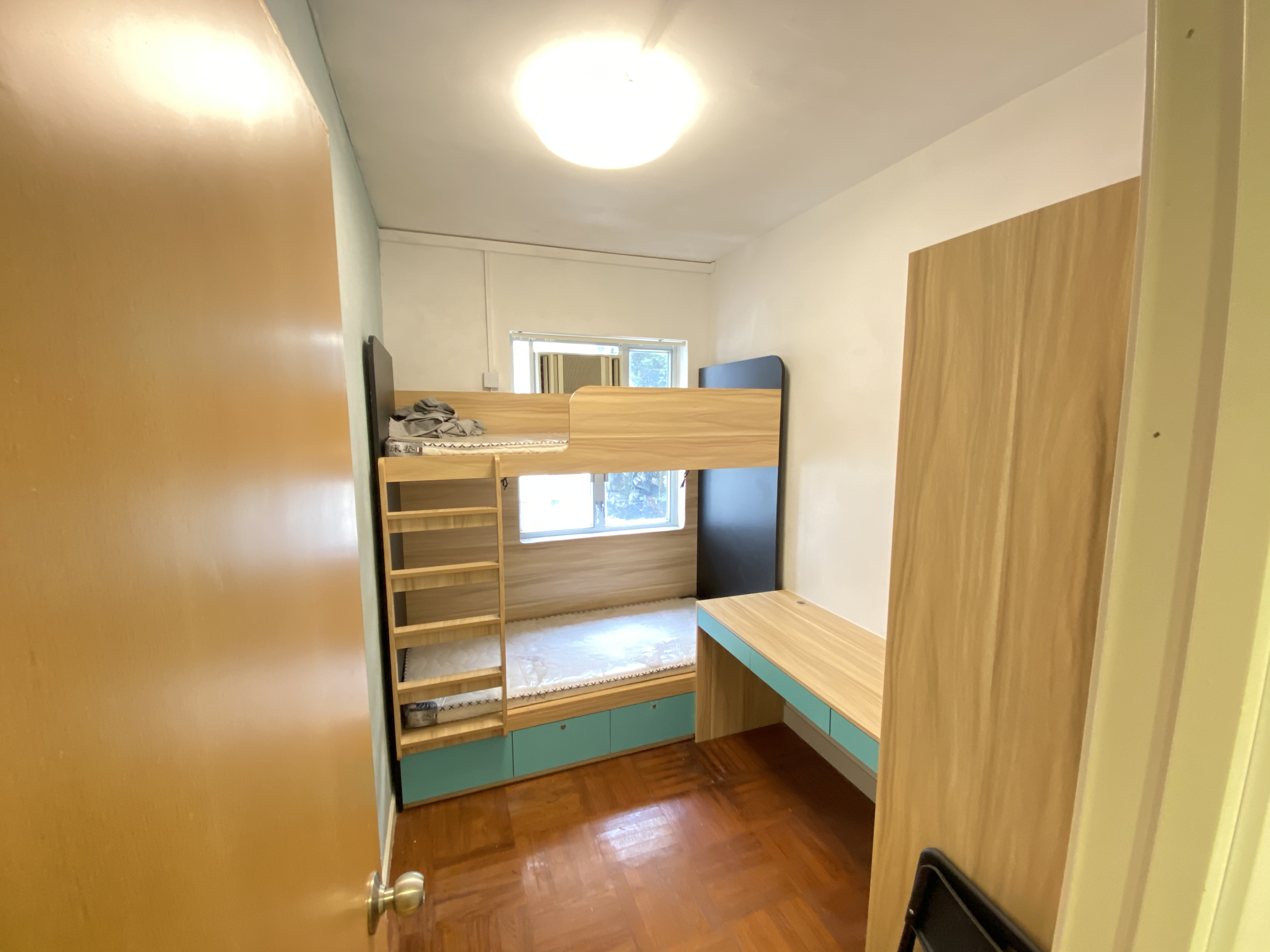 公寓设施:共含 G 层至 5 楼,安保方面配备每层单独防盗门锁,消防设施定期检查,配套专属客服、免费 WIFI 及定期公区清洁服务。一楼设露台、二至五楼有公共天台作为晾晒区域;除 G 层外,各楼层按 4 人共用标准配置厨房、洗手间、浴室,1-5 楼统一配备洗衣机、微波炉、冰箱及厨房炊具供住户共用。所有房间均有床垫、窗帘、床下储物空间、衣柜、冷气机等基础配置。