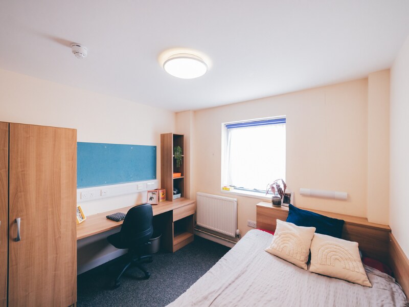 所有房型均为独立卫浴(ensuite)涵盖书桌、椅子、单人床、衣柜、置物架、镜子、台灯、垃圾桶等配置;4-8 人共享厨房,配备炉灶、烤箱、多台冰箱 / 冰柜、水壶、微波炉、吸尘器、烫衣板;现场设有洗衣房(Hawkins Quay House 1),提供洗衣机和烘干机,需自备洗涤剂;仅 Saint Houses 4 和 5 配备电梯;每个房间有独立邮箱和钥匙,包裹可在 Matthew Quays House 1 前台领取,校园内有 Amazon 储物柜。
