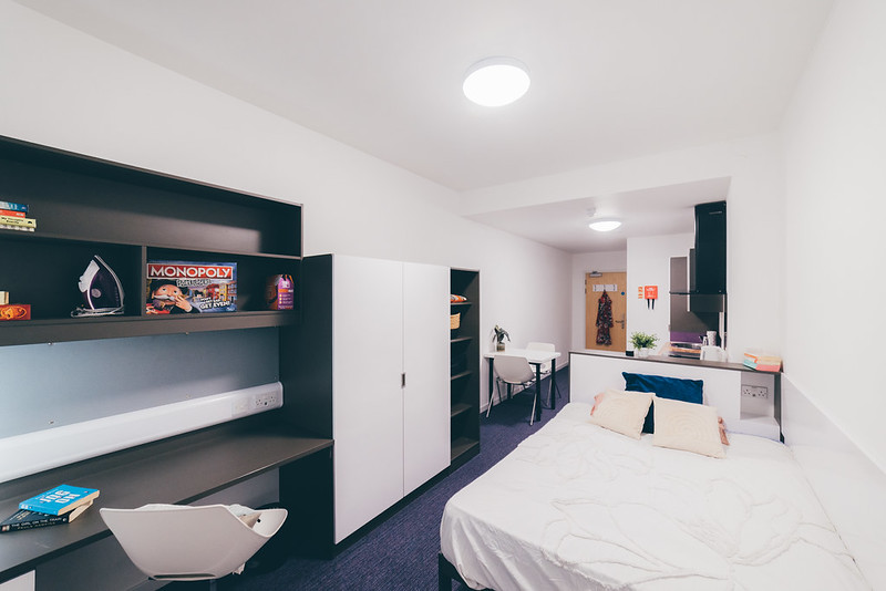 Premium+ studio:面积约 20㎡,包含独立卧室、学习区、小厨房和独立卫浴。