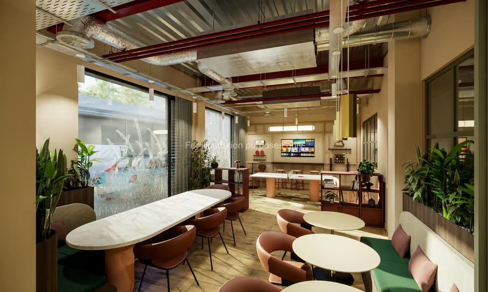 休闲社交:公共休息室、影院休息室、游戏区、公共餐厅、户外区域