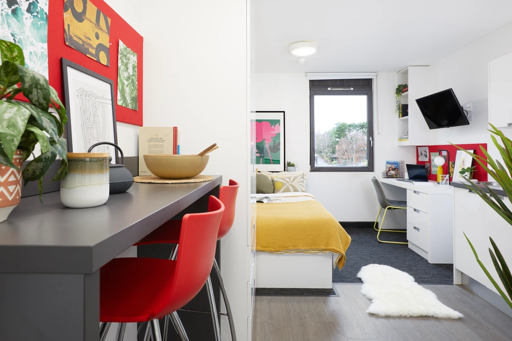 公寓位于伯明翰大学南门,259间全studio房型,离商学院最近的公寓,前台有香港小姐姐沟通无障碍,Aldi/中超/韩超/中韩日餐馆等步行8min内,上学通勤生活都方便。