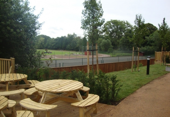 公寓配有温馨小庭院,配木质桌椅,庭院外是球场,视野开阔无遮挡,闲暇时可以和朋友坐在这里喝杯咖啡、聊聊天,轻松惬意~