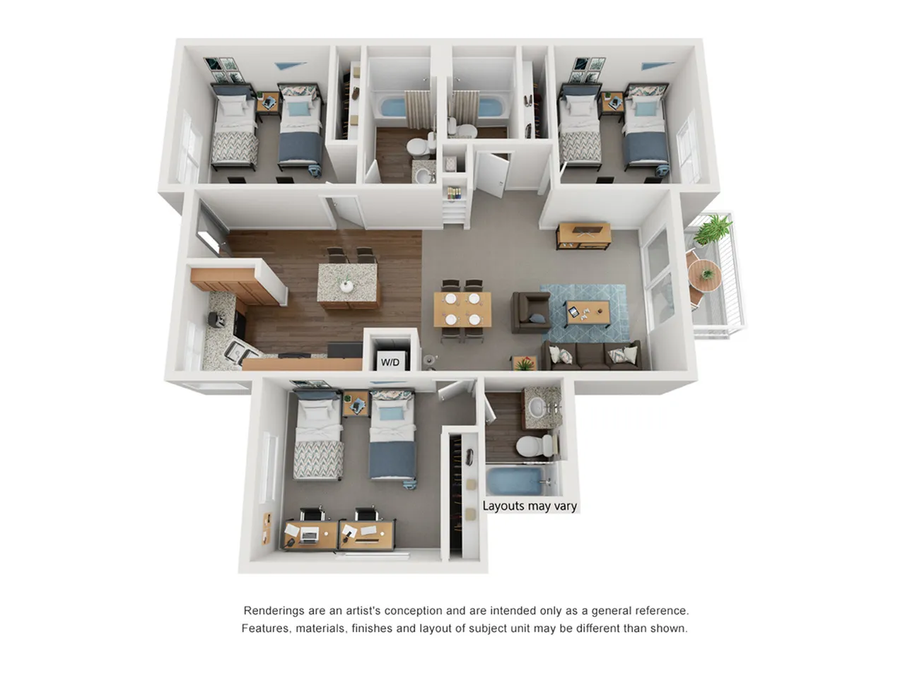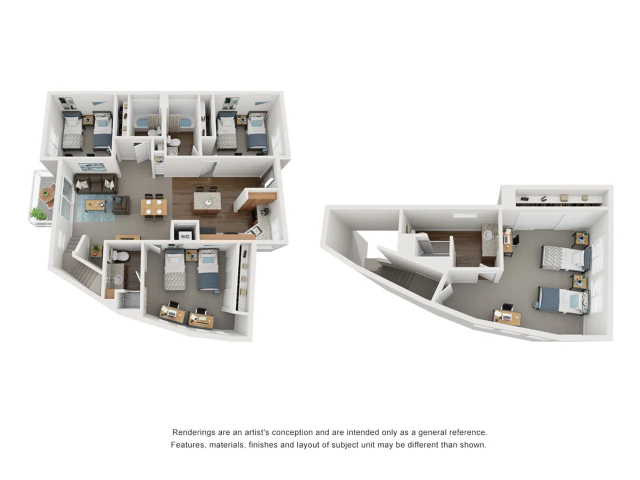 提供 2-6 居等多户型,按床位出租;房间宽敞、全套家具,配 暖气、可开窗;每户带独立洗衣机+烘干机,空间实用舒适。