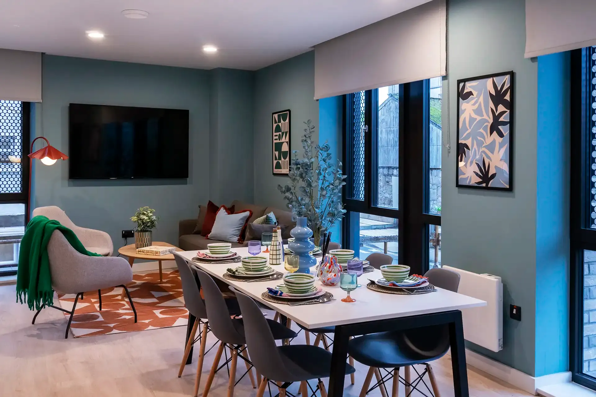 公寓提供多种 En-suite 房型,按楼层、景观与配置分级,所有房型均为独立卫浴卧室,配备共享厨房与起居空间,提供固定费用的全包账单服务(含水电、网络、垃圾处理等费用)。