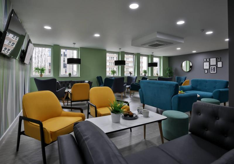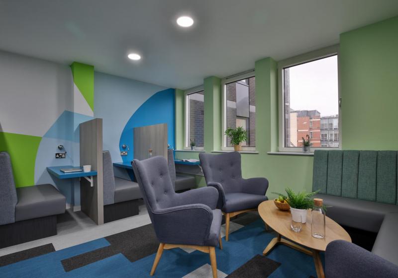 大部分房间拥有绝佳景色,可俯瞰到诺丁汉城堡。 拥有大面积窗,为室内提供丰富的自然光线。包含充足的储物空间,学习空间,搭配具有风格的时尚设计,满足一切所需,同时还配备了宽敞的社交空间,电视,台球桌和健身房。