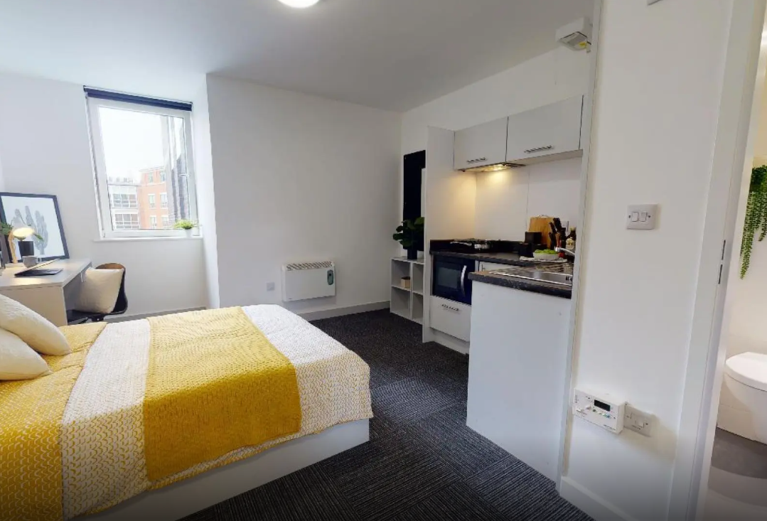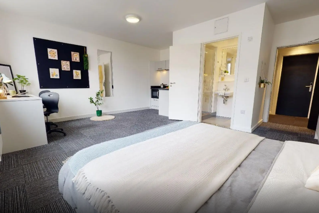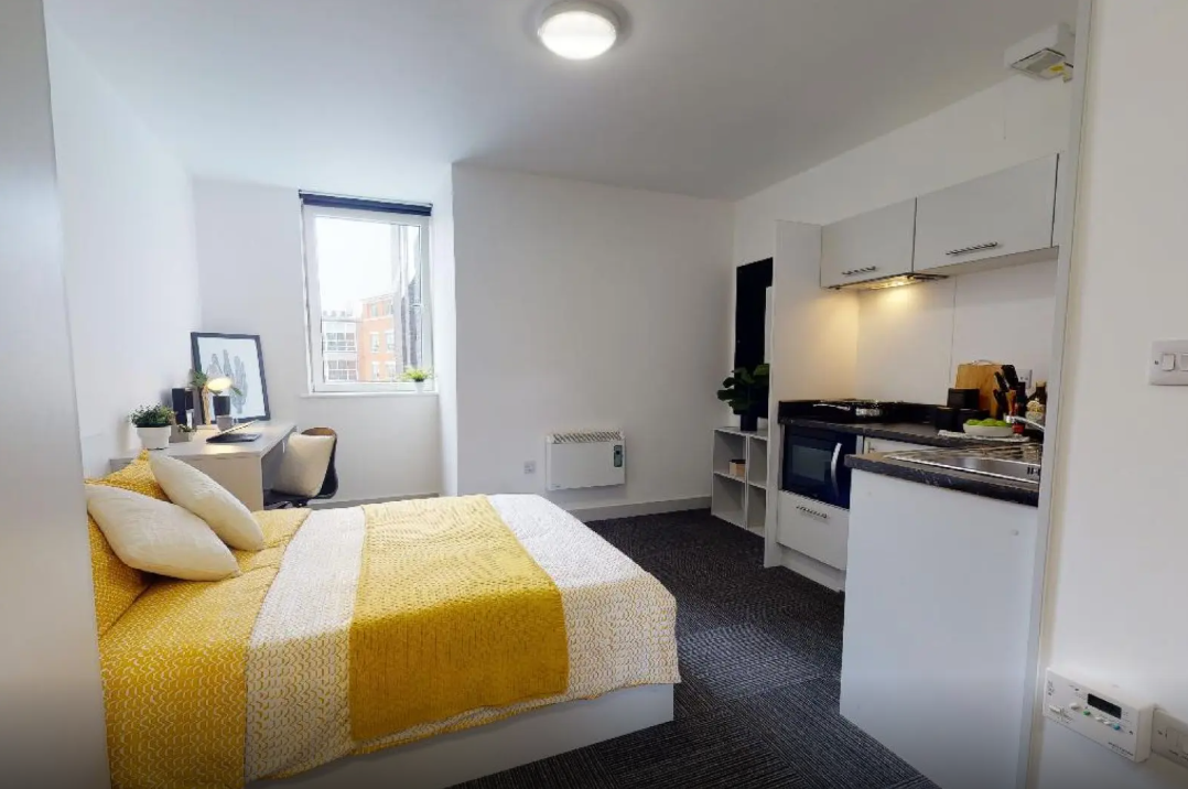 高品质学生公寓,全包式账单+超高速 WiFi+24 小时安保,内设健身房、影院室、游戏区,步行7-8 分钟可达市中心和诺丁汉特伦特大学。