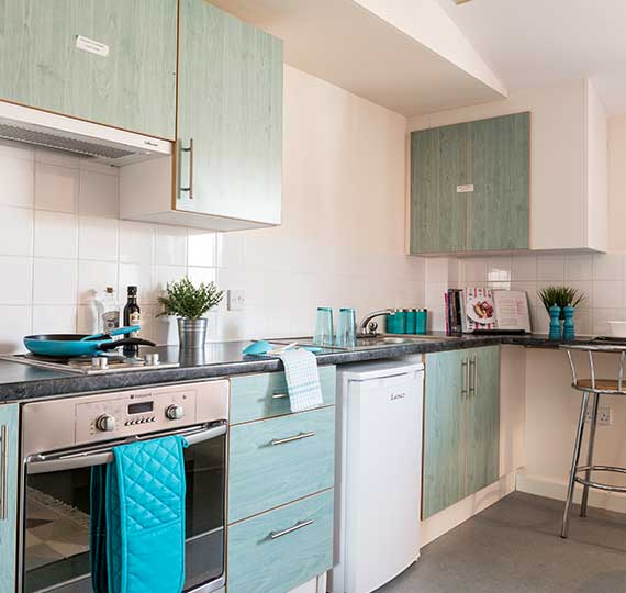 房间内部:Point exe提供studio和ensuite两种房型,配备齐全,装修精良。一共设有221间卧室,分为5-7人套间,每个卧室都配有独立卫生间,公共厨房配备齐全的家具家电。