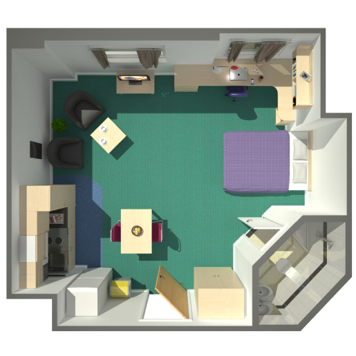 Burley Studios提供带独立卫浴的En-suite房型,每个房间均配备舒适的小号双人床、宽敞书桌与座椅、充足储物空间的衣柜以及私人厨房区域。厨房内配有完整烤箱等设施,满足日常烹饪需求。每间房还配有洗衣机/烘干机、电视,并设有可开启窗户,保障通风与采光。全年稳定供应暖气与热水,所有燃气、电力、水费及高速Wi-Fi均已包含在租金内,并包含物品保险,让学生居住更省心。