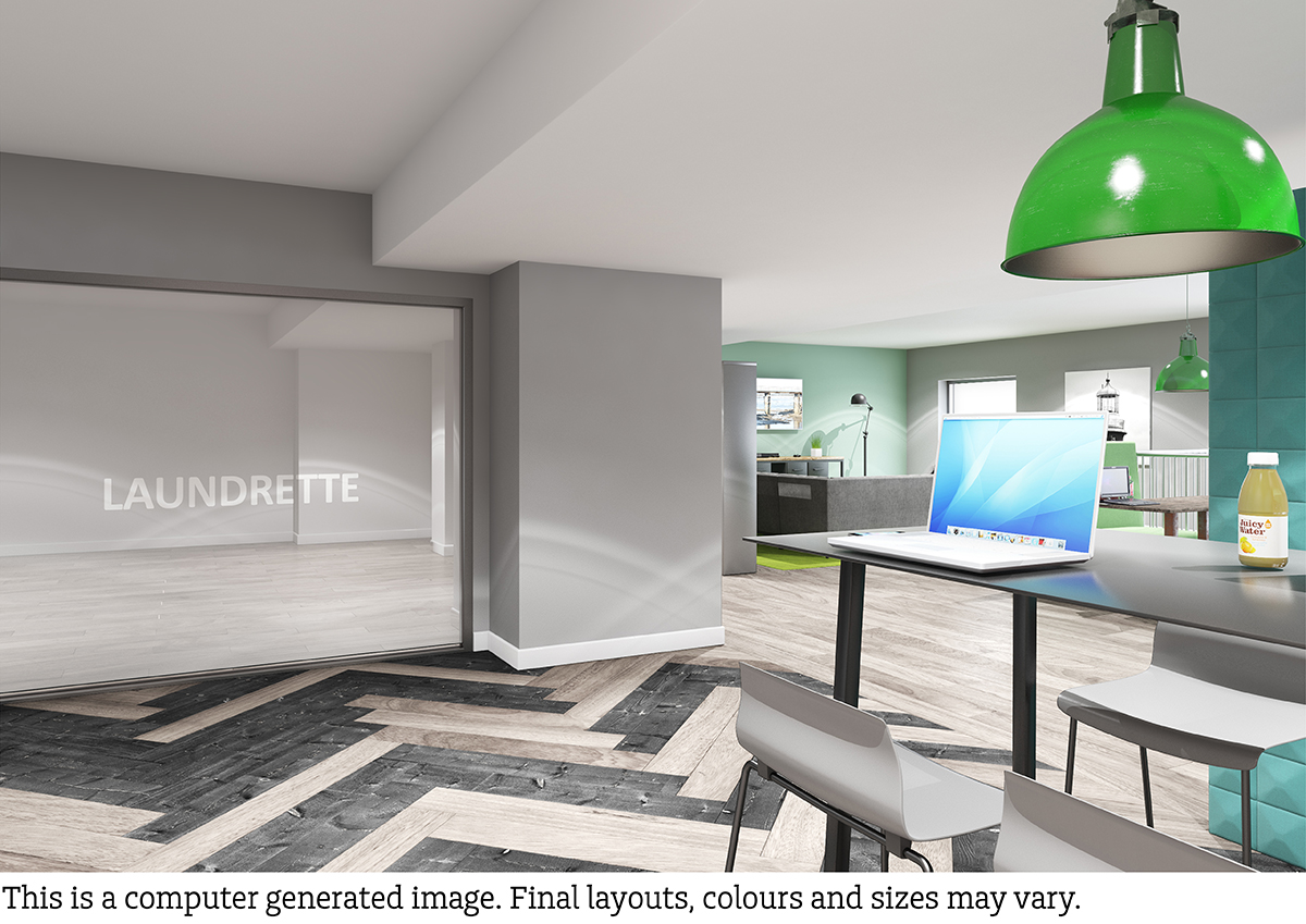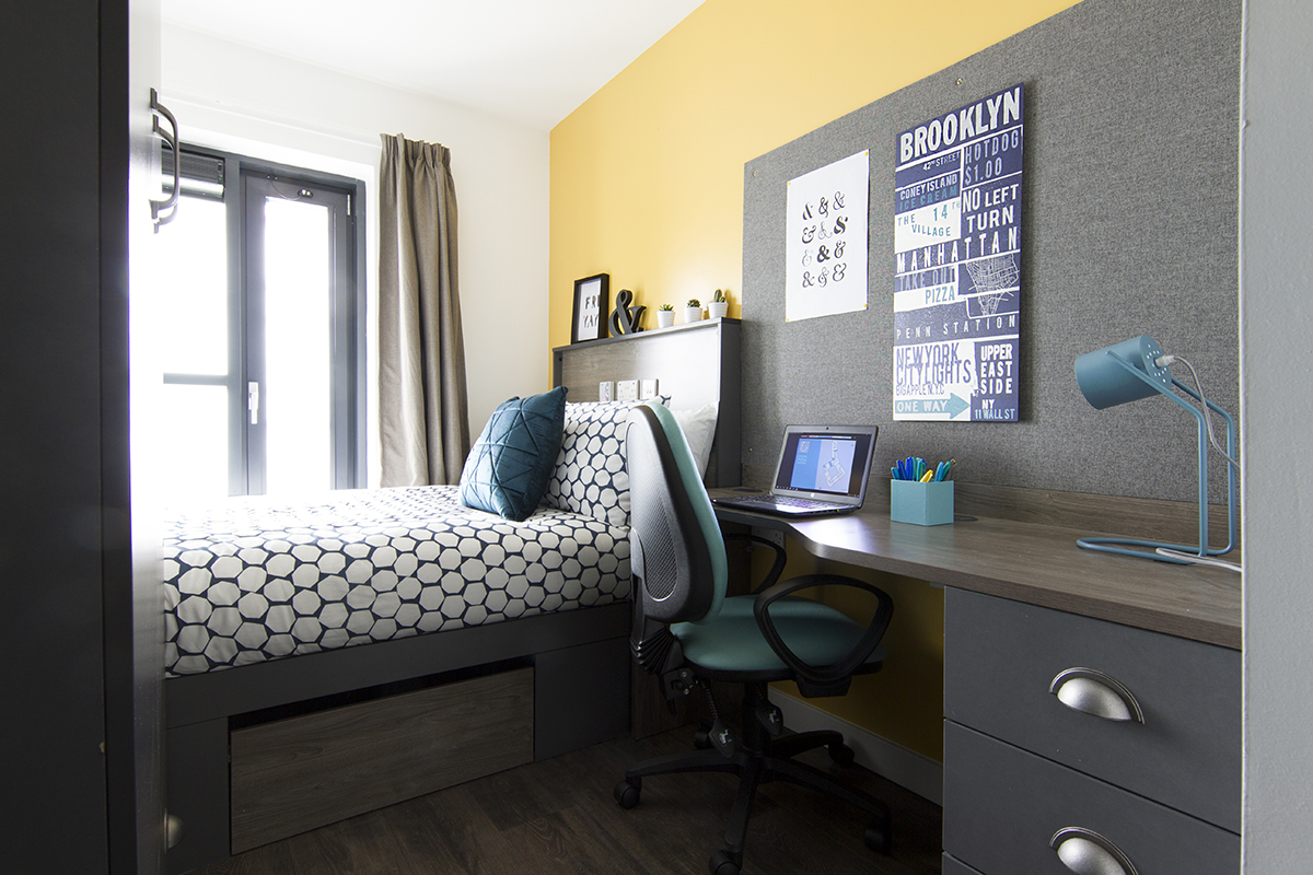 房间设计现代舒适,En-suite房型采用4-6人共享厨房和客厅的布局,配备独立卫浴;Studio房型提供完整私人空间:独立卫浴、独立厨房(炉灶、微波炉、冰箱、水槽)、书桌椅。所有房间均配备双人床、充足储物空间、学习区域及可开启的落地窗,部分高楼层房间享有全景视野。