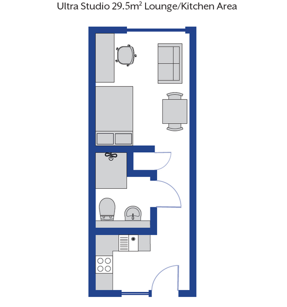 市中心步行 5 分钟直达!56 间宽敞单间套房,包全 bills + 保险,24 小时安保 + 专属自习室,公交 20 分钟到阿伯丁大学,拎包入住无琐事,学习逛吃两不耽误。