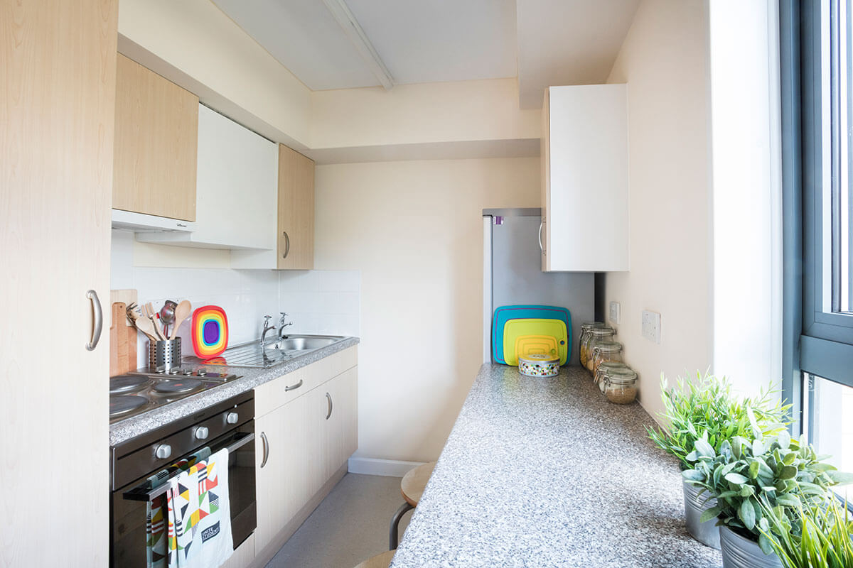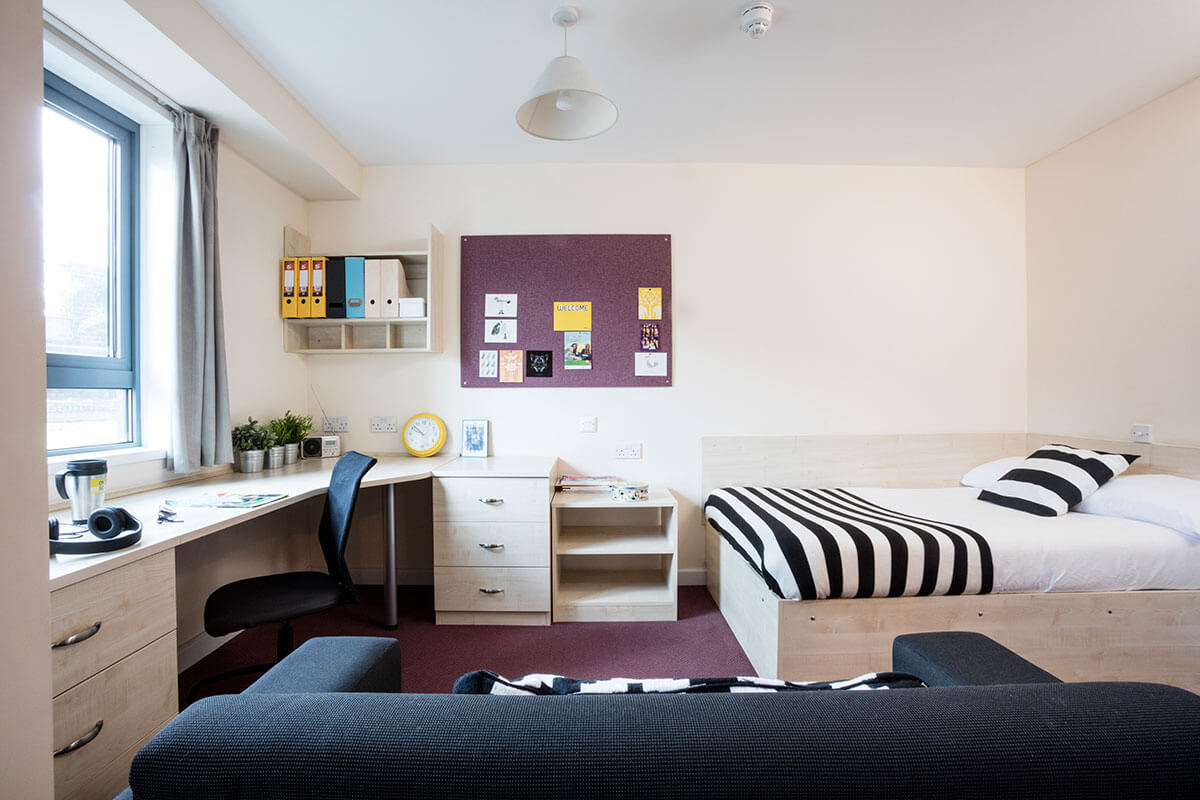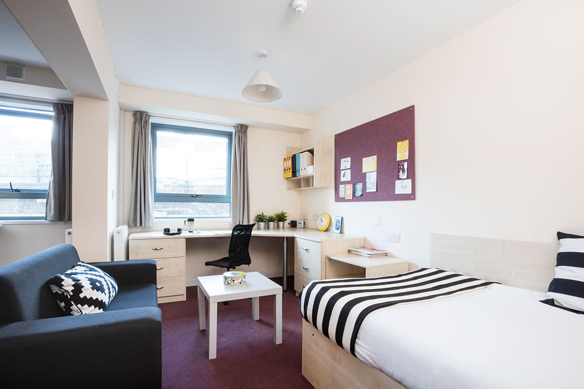 En-suite房型为带独立卫浴的单人间,4到8人共用厨房,目前只提供 Classic En-suite Room(经典房型)是13平米,3/4大小床。Studio房型为带独立厨房以及独立卫浴的套房, 包含现代化厨房,卫浴和书桌,厨房配有冰箱,微波炉,烤箱等基本厨房设施,3/4大小床。