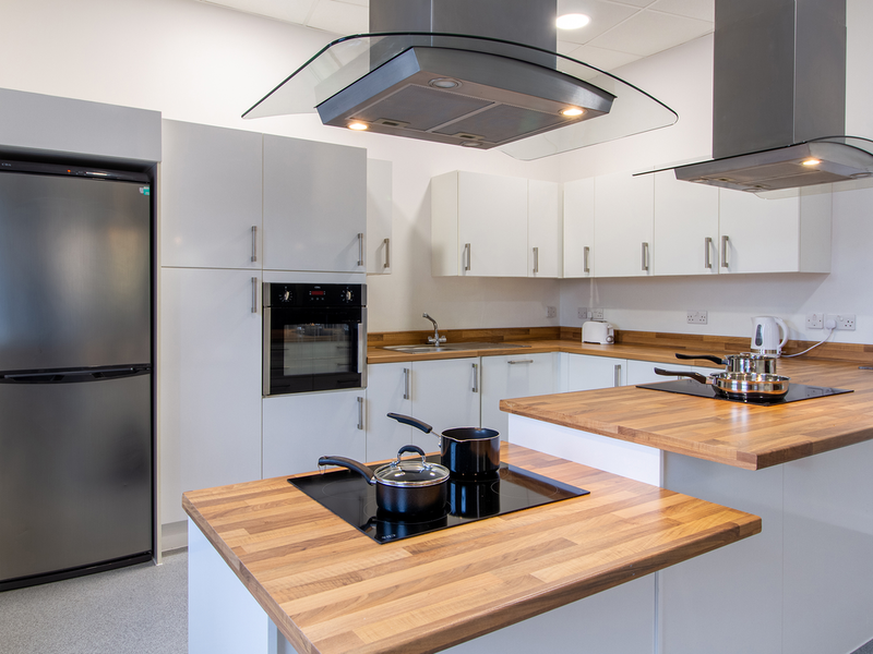 房间内部:studio 面积约 18-22㎡,ensuite 约 14-17㎡;均配 1.2 米单人床、可开启大窗户(通风顺畅,部分房间能看到校园绿植)、独立卫浴与紧凑型厨房(配小冰箱、电煮锅);全屋暖气覆盖,冬季温暖舒适,适配科尔切斯特微凉气候。