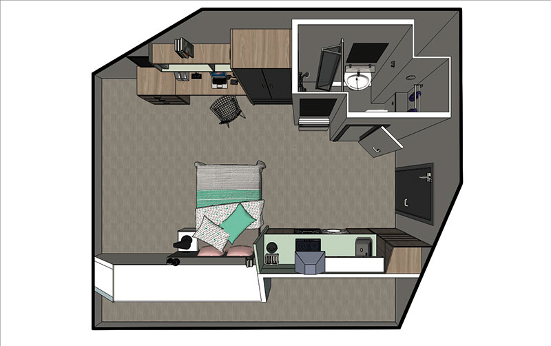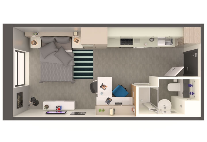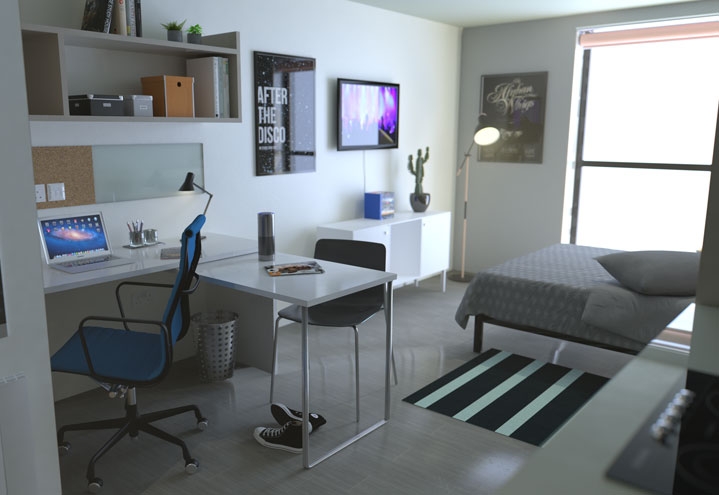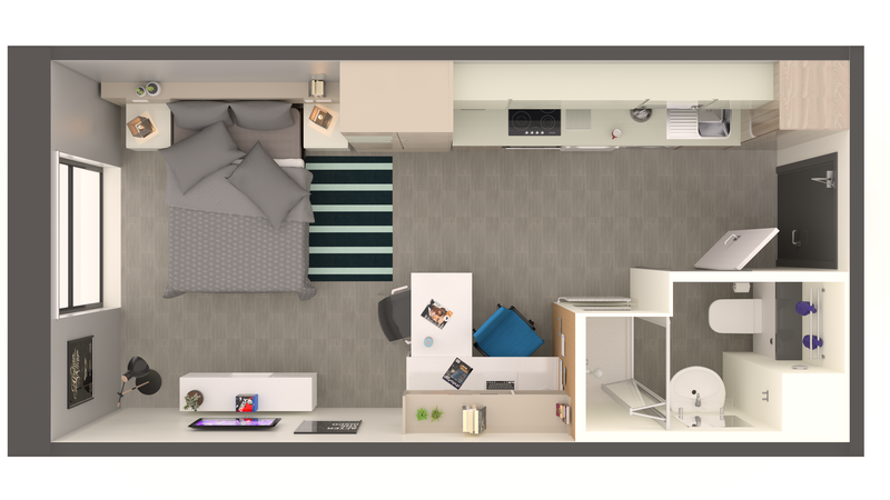 公寓选址利兹核心生活圈,主打高私密性的 studio 房型,搭配完善的生活配套与便捷的交通网络,为留学生打造兼具舒适与效率的居住体验。