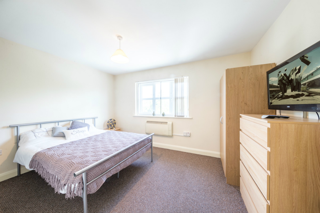 房型以non-ensuite为主,空间实用且家具齐全:3/4 尺寸小双人床、书桌、衣柜、充足储物空间,2-4 人共享卫浴与厨房, communal TV 配套,所有房间均覆盖高速 WiFi,中央供暖稳定,门窗隔音效果良好,家具家电全配齐,拎包即可入住,无额外购置成本。