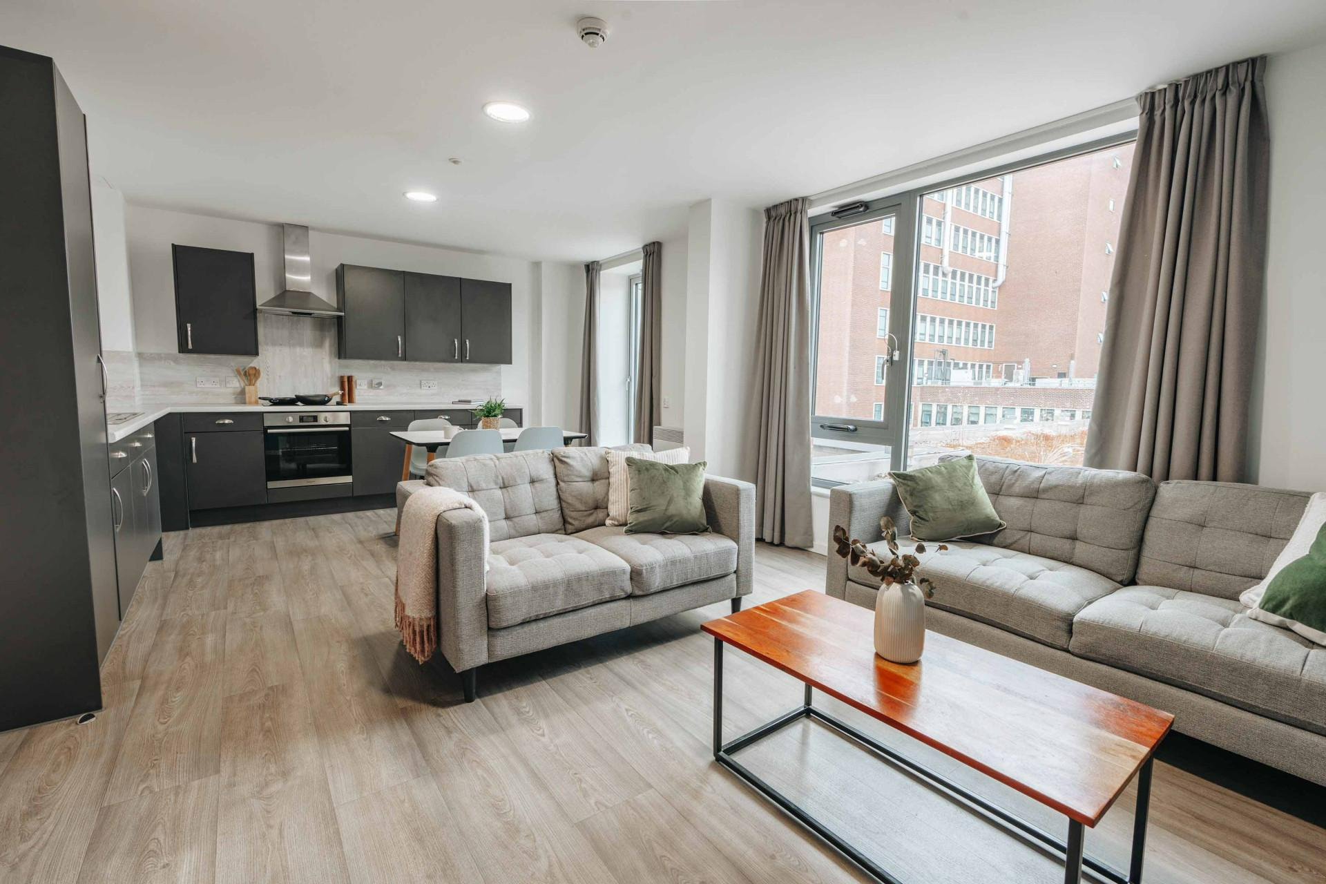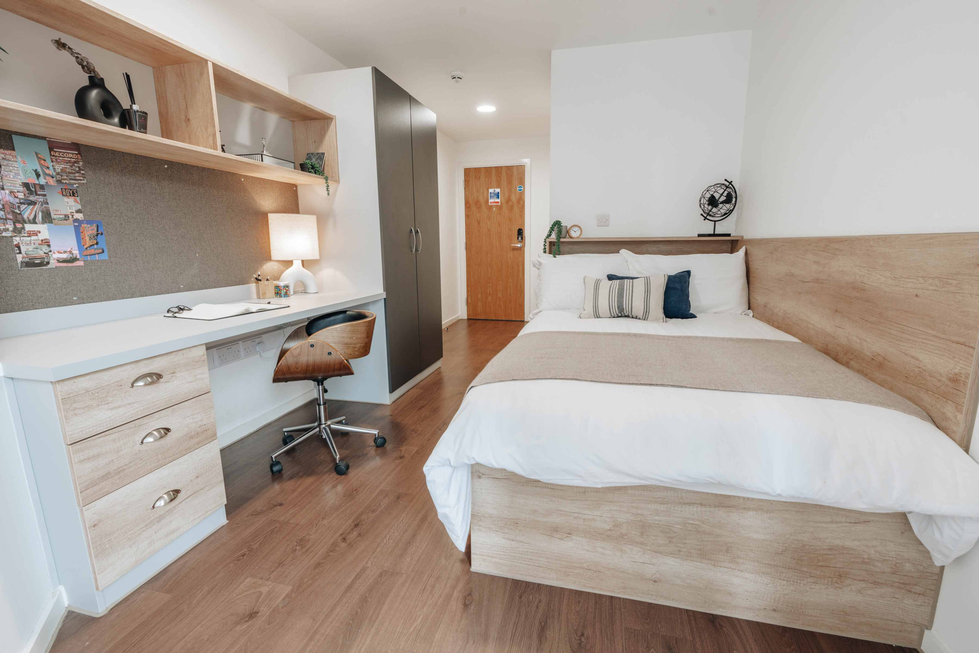 提供Ensuite(单间带独立卫浴)、Studio(开放式套房)、一居室和Loft多种房型。房间采光极佳,窗户可开启通风,配备全套家具、独立暖气和24小时热水,学习休息两相宜。