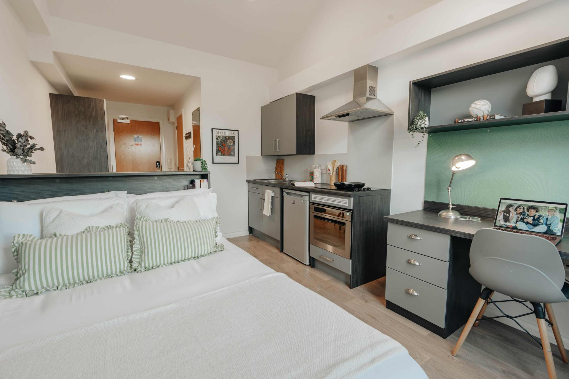 -Avon Studios 主要提供多种规格的 Studio(独立套房) 房型,面积19-25平;每个Studio都配备了独立浴室以及设施齐全的小厨房。厨房内通常配有炉灶、微波炉、冰箱等基本厨电。卧室内则有书桌、椅子、衣柜和储物空间;租金已包含水费、电费、暖气费、高速WiFi及财产保险。