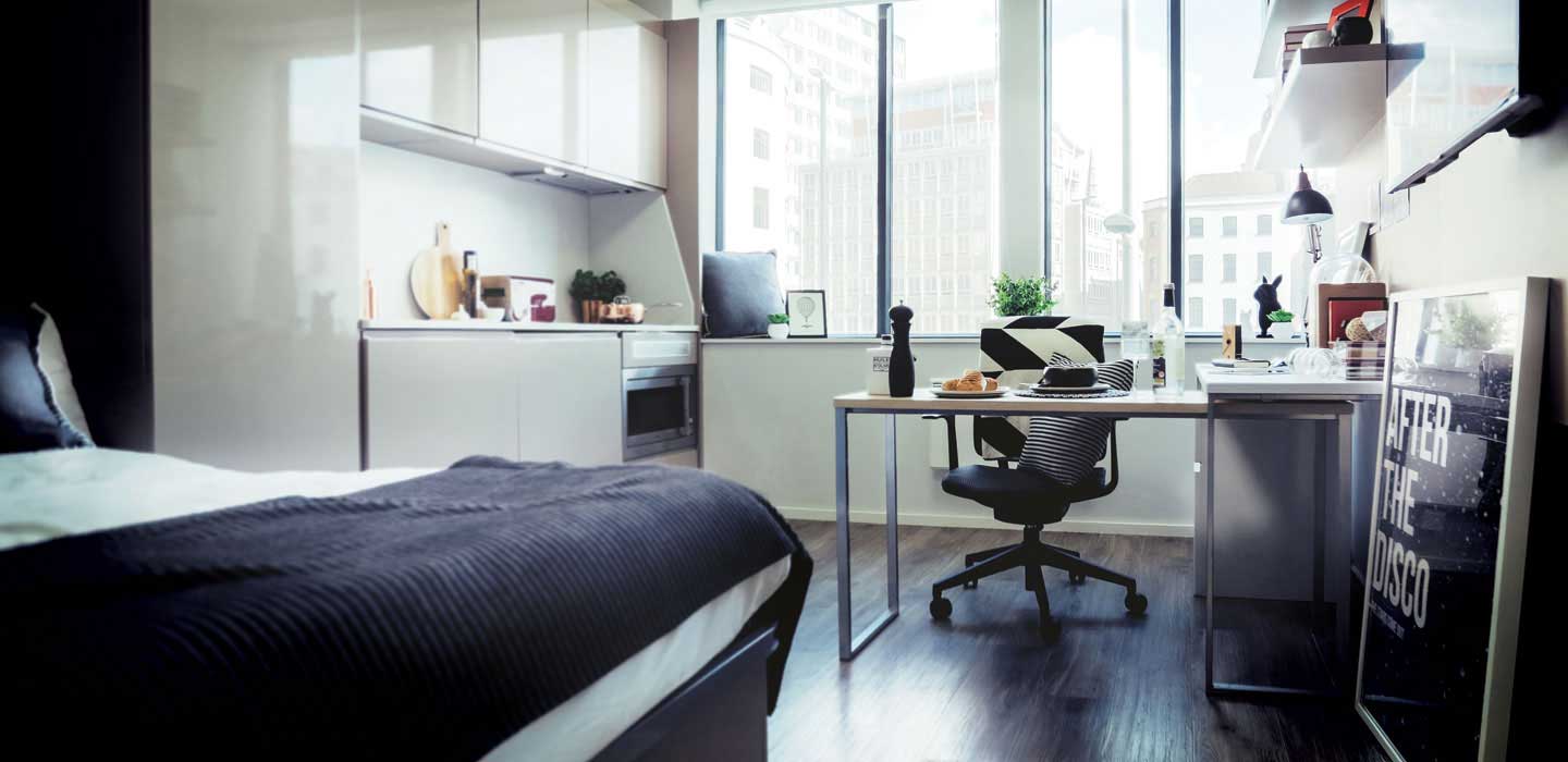 Vita Fountainbridge地理位置优越,位于爱丁堡市中心,距离爱丁堡大学GS校区很近,步行大概10-20分钟,公寓附近车站、餐厅、超市齐全,提供studio房型,生活交通便利。Studio房型均可以接受双人入住,需要加收20%的房费。