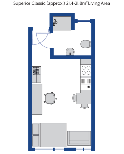 所有房间均为Studio房型,独立厨房、起居区与学习区划分清晰。房间配备家具、床及厨房用品,暖气充足,24小时热水,窗户可正常开启,通风采光佳。
