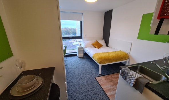 周边生活气息浓厚,步行5分钟内有Tesco超市与多家餐馆,日常采购就餐方便。临近中国城,各式中餐店云集,轻松吃到家乡味。区域治安良好,步行可达市中心商圈,闲暇时可逛商场、看展览,平衡学习与生活。