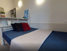 提供多种房型:共享卫浴的Apartment、独立卫浴的Ensuite、带独立厨房的Studio。房间配双人床、可开启窗户(通风无忧)、中央暖气与基本家具,空间布局紧凑实用。