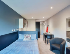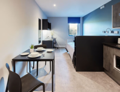 公寓内部提供了完善的生活设施和周全的服务,旨在为学生创造一个安全、舒适的居住环境,生活与学习设施:公寓内配有洗衣房、自行车库、自习室/图书馆、公共休息室和娱乐区。主要提供 En-suite(独立卫浴,共享厨房)和 Studio(独立卫浴和厨房)两种房型