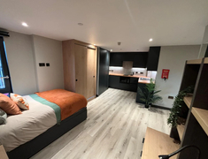 The Port On The Square靠近市中心,步行到布里斯托大学大概25分钟,不到十分钟就可以到达购物中心Bristol Shoping,Cabot Circus,超市等,生活便利,提供带独立卫浴的ensuite房型和独立卫浴独立厨房的studio 房型。