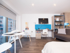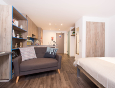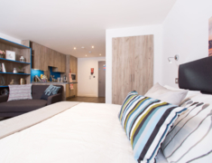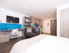 所有房型都是Studio,房间内自带厨房,卫生间,设备齐全。内温馨舒适,配有床,桌子,椅子,衣柜,高速无线网络等。