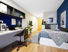 包含Ensuite户型与Studio户型,房间配套设施齐全,每个房间都配有双人床,桌子,椅子,储物空间等,部分房间配有落地窗,采光很棒哦。