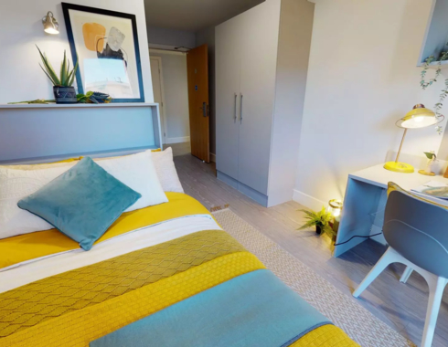爱丁堡现代感学生公寓,2021年翻新,近 Haymarket 火车站与多所校区,Ensuite/Studio 房型可选,租金包水电暖 WiFi,学习生活通勤超便捷。