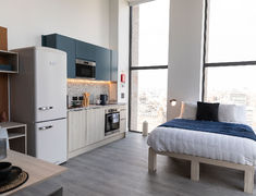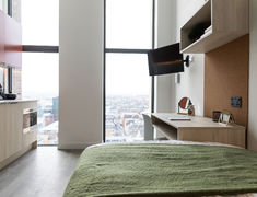 本公寓坐落于格拉斯哥核心学术区,步行1分钟即达斯特拉斯克莱德大学,5分钟可达格拉斯哥城市学院,极适合学生居住。周边生活便利,5分钟内步行至Tesco Express、Oaka超市及多家餐厅(如Hazel、Pasha)。公寓内设自习室、娱乐室、健身房、自行车储藏室,提供高速WiFi、空调、洗衣房及免费保险,并配备24/7安保与在线维修服务,全方位保障安全与舒适,是追求高效生活与学术便利的理想选择。