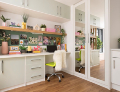 房间内部:每间房均配备英国标准小双人床、书桌椅、衣柜,储物空间充足,窗户可开启,通风良好。Ensuite房型多为5-6人间,适合与好友共同居住;Studio则拥有独立厨房与卫浴,满足偏好私密生活的学生。