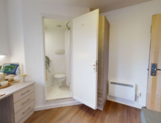 房间均配基础家具,部分房型带私人卫浴,studio 房型带小厨房。公寓设有共享厨房、用餐区、公共 lounge 和自习空间,适合社交、聚餐和学习。公共设施包括高速网络、公共洗衣房、电梯、自行车存放和垃圾回收等,兼顾生活与学习便利。
