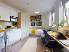 公寓地处Kingston心腹地带,位于市中心,周边超市,邮局,银行,购物中心,特色餐厅等一应俱全,提供多种房型,包括带私人卫浴的 ensuite 房间和带小厨房的 studio 房间,所有房间均配家具(床、衣柜、书桌、储物空间等),拎包即可入住,,整体设计现代、维护良好,兼顾私人空间、生活便利与社交需求。