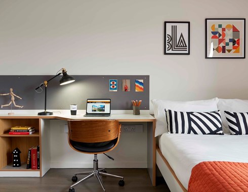 提供两类核心房型:ensuite 房型配备独立卫浴与共用厨房,适合热爱社交、乐于分享的学生;studio 房型拥有独立卫浴与独立厨房,私人空间充足,支持双人入住,适配偏好安静独居的同学。