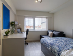 所有房间均配备标准尺寸Small Double Bed,加长书桌椅套装,双开门衣柜,干湿分离的独立卫浴间。